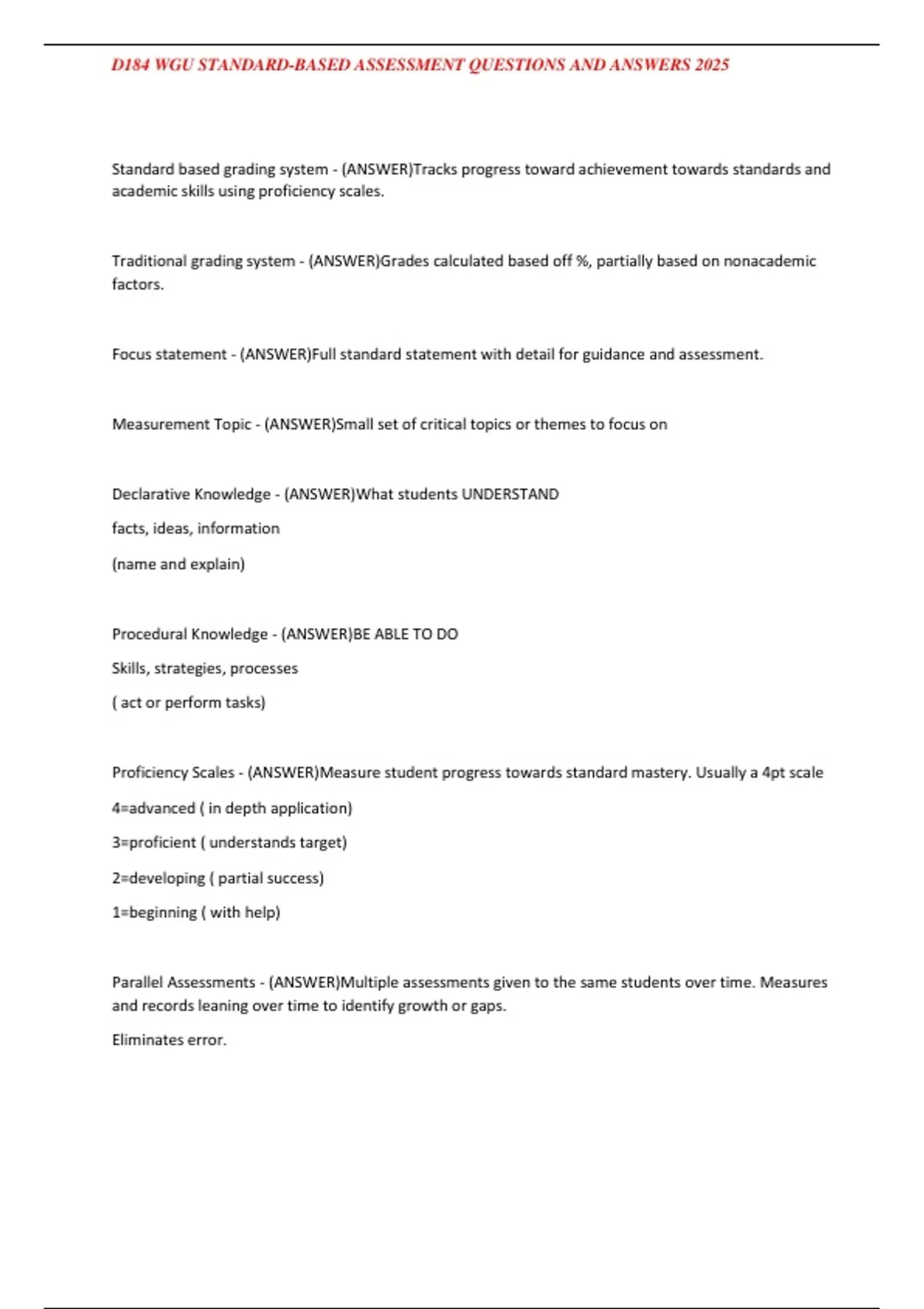 D184 WGU STANDARD-BASED ASSESSMENT QUESTIONS AND ANSWERS 2025