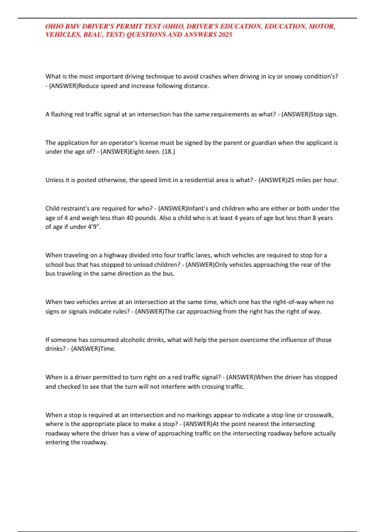 OHIO BMV DRIVER'S PERMIT TEST (OHIO, DRIVER'S EDUCATION, EDUCATION, MOTOR,