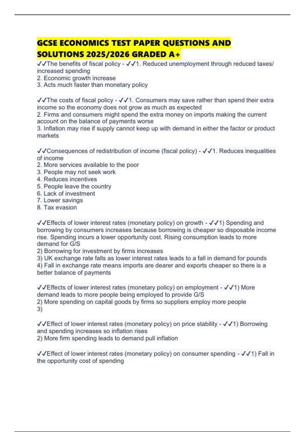 Ace your GCSE Economics exam with this 2025/2026 test paper featuring complete questions and graded A+ solutions. Covers fiscal/monetary policy, globalisation, supply & demand, and market structures. GCSE economics, economics test paper, exam questions 2025, fiscal policy, monetary policy, globalisation, supply and demand, market structures, externalities, elasticity, study guide, revision notes, A+ solutions