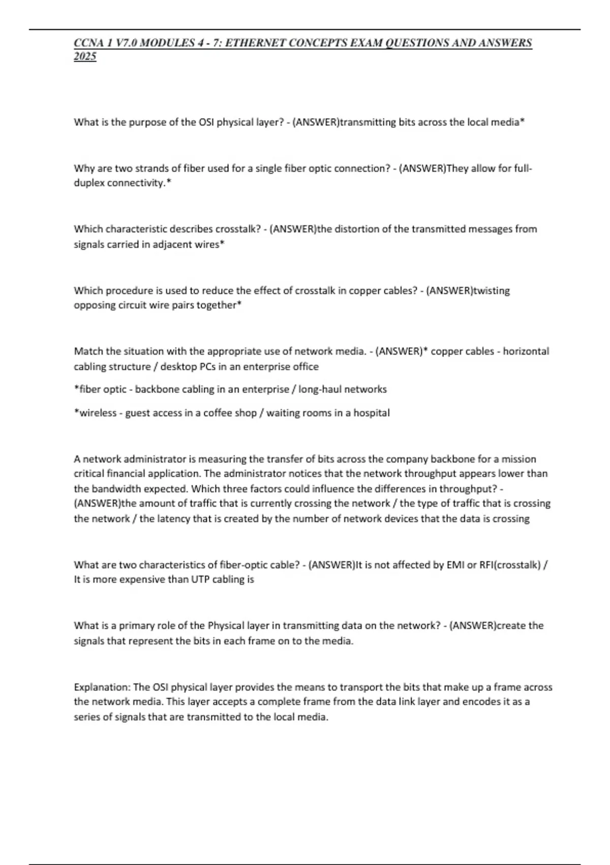 CCNA 1 V7.0 MODULES 4 - 7: ETHERNET CONCEPTS EXAM QUESTIONS AND ANSWERS 2025