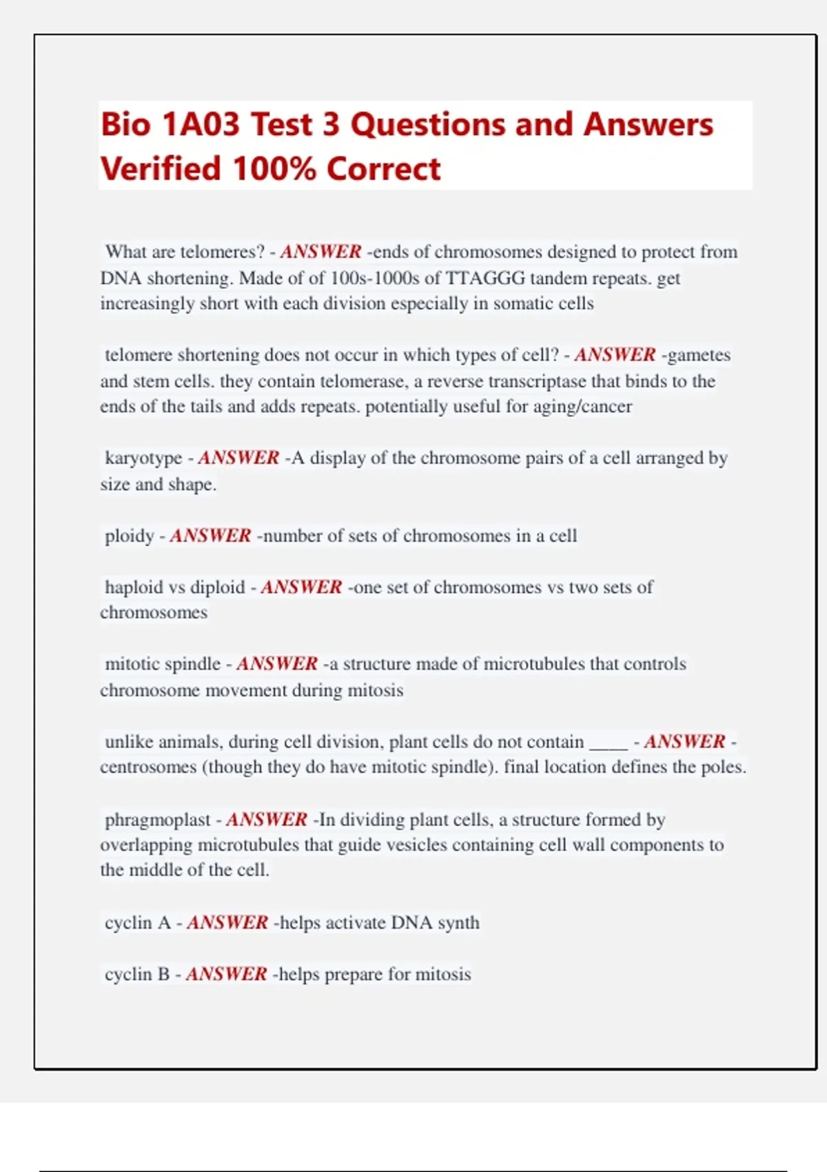 What are telomeres? - ANSWER -ends of chromosomes designed to protect from