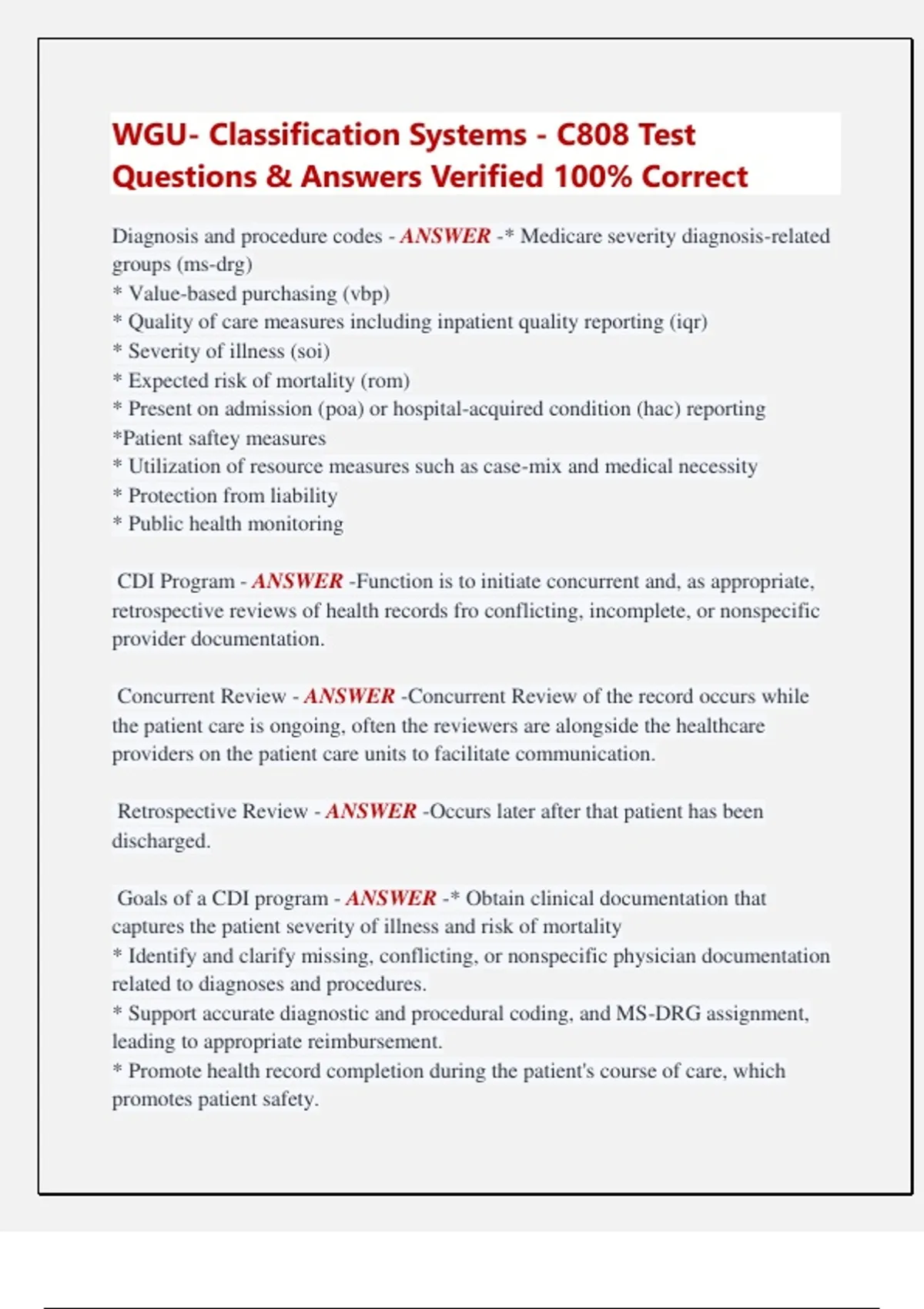 Diagnosis and procedure codes - ANSWER -* Medicare severity diagnosis-related