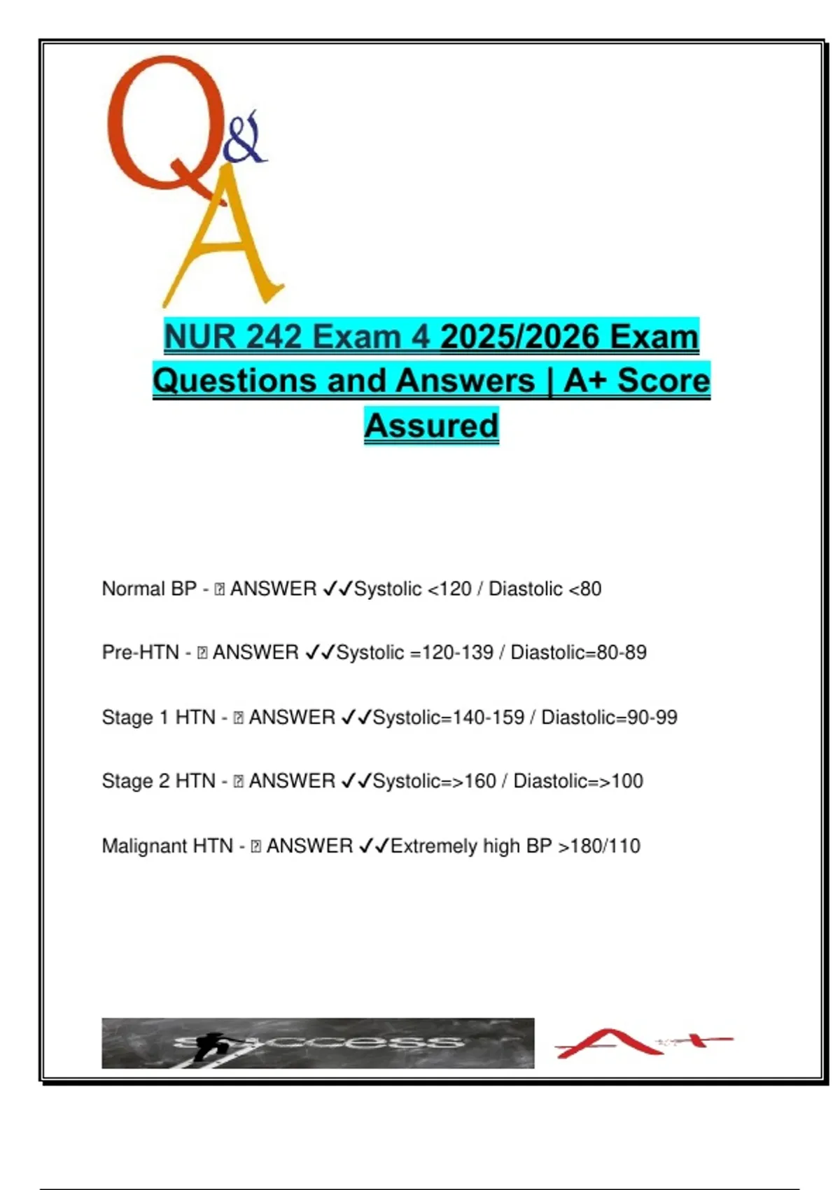 Normal BP - 🧠 ANSWER ✔✔Systolic <120 / Diastolic <80