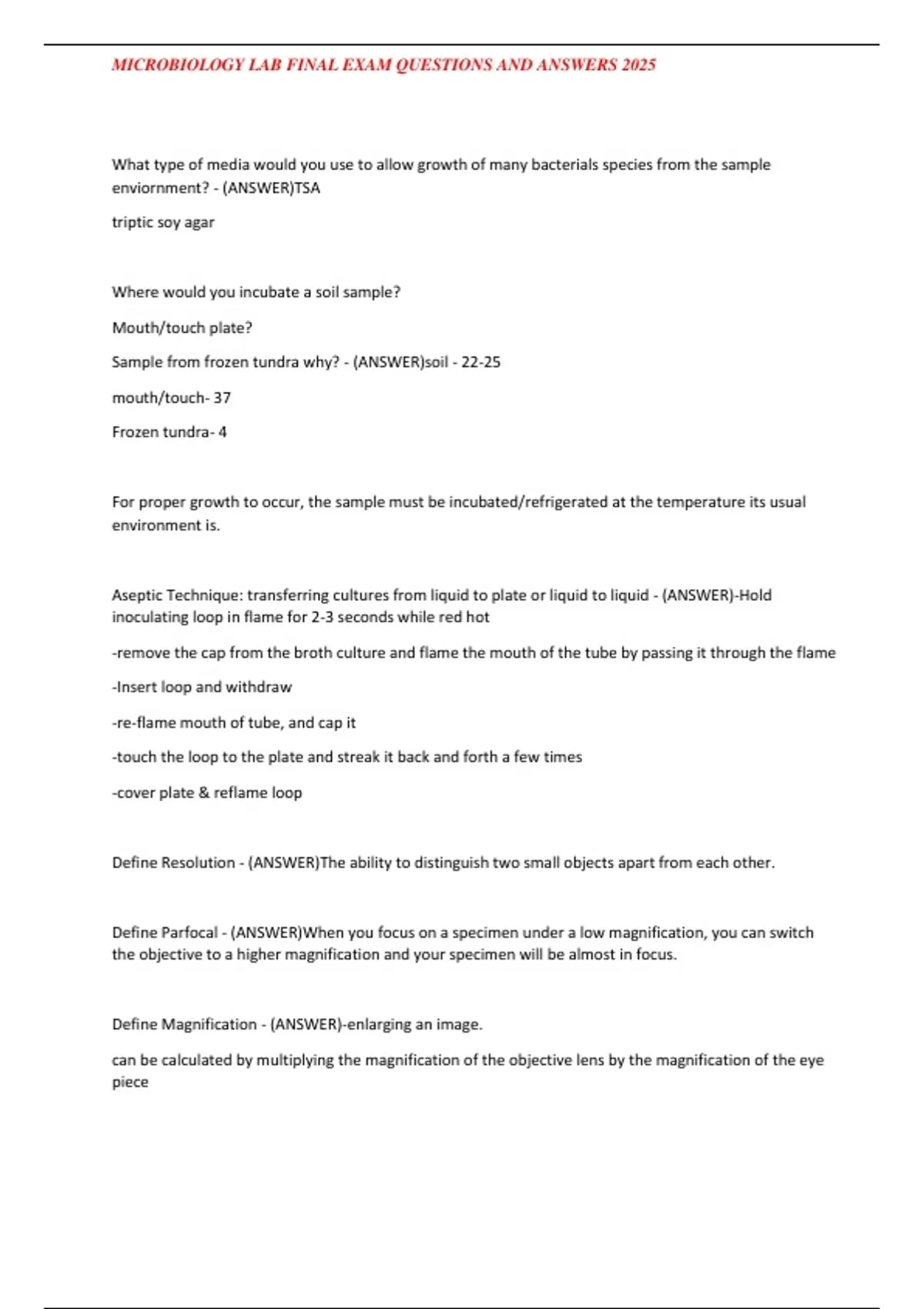 , MICROBIOLOGY LAB FINAL EXAM QUESTIONS AND ANSWERS 2025
