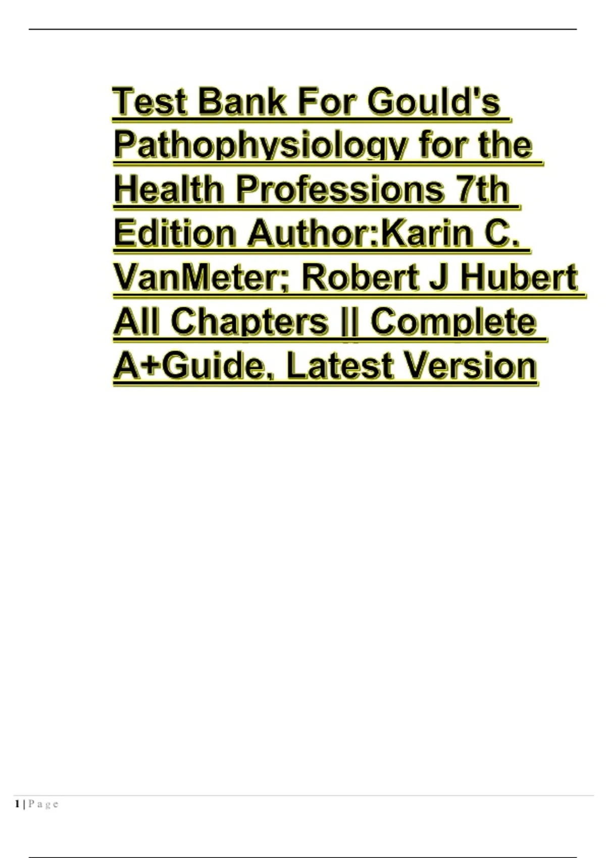 Vanmeter And Hubert: Gould’s Pathophysiology For The Health Professions, 7th Edition