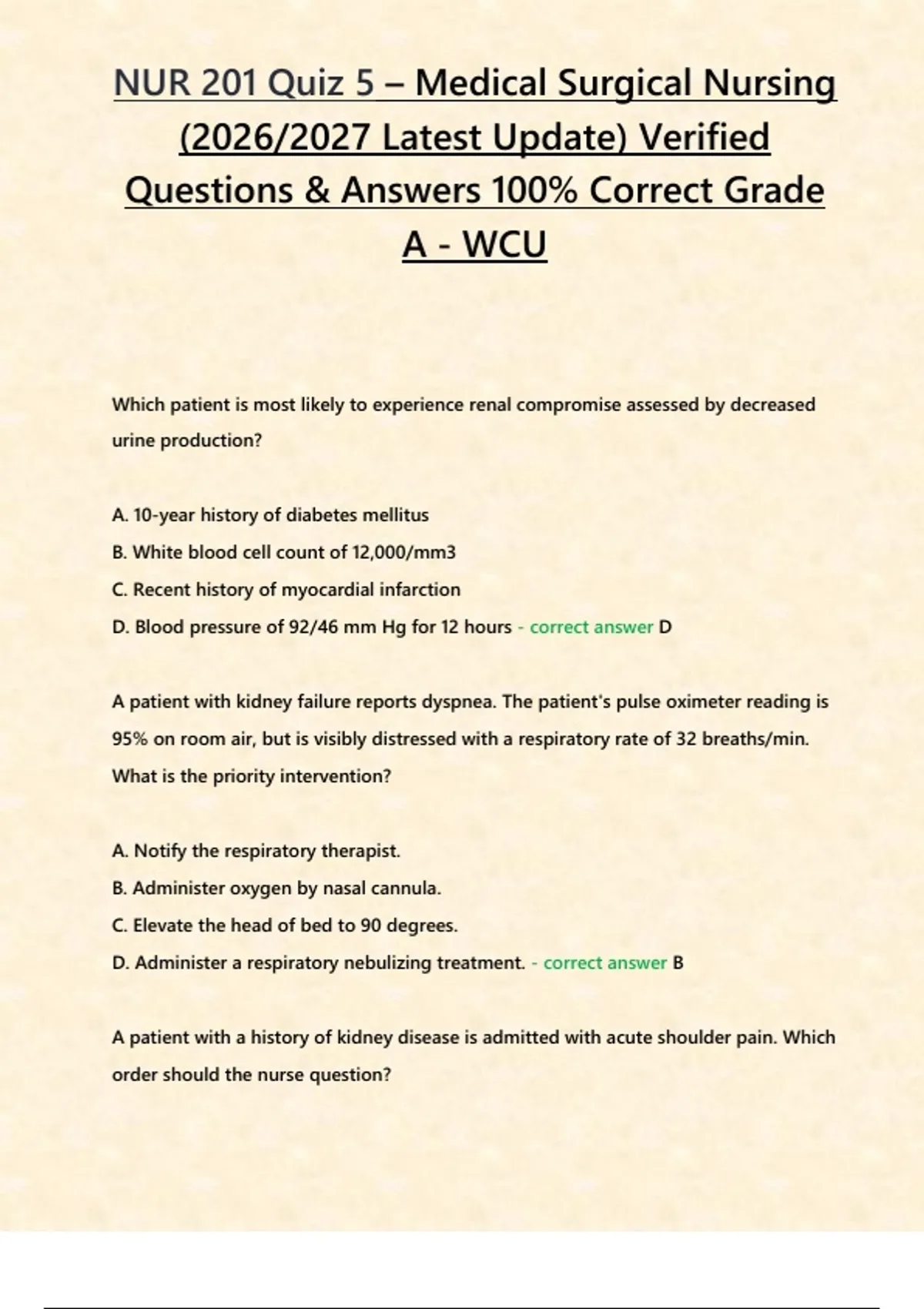, NUR 201 Quiz 5 – Medical Surgical Nursing