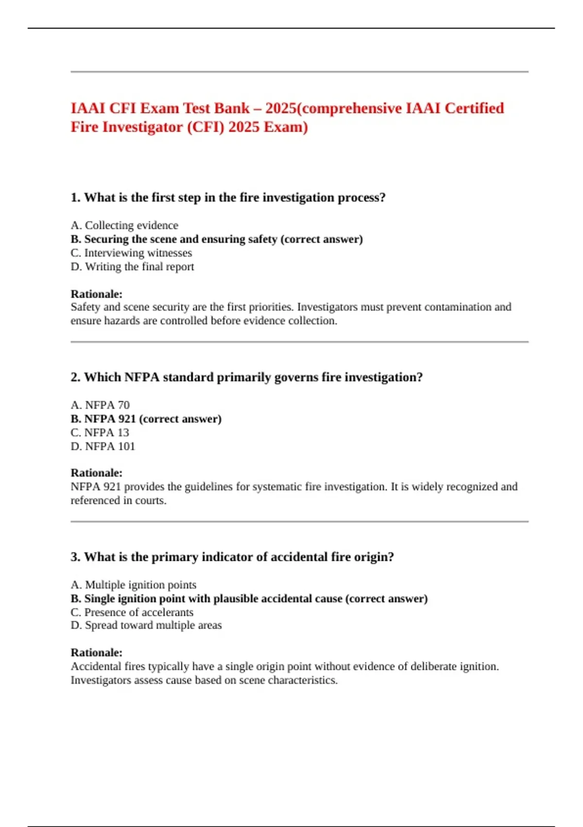 IAAI CFI Exam Test Bank – 2025(comprehensive IAAI Certified Fire Investigator (CFI) 2025 Exam)