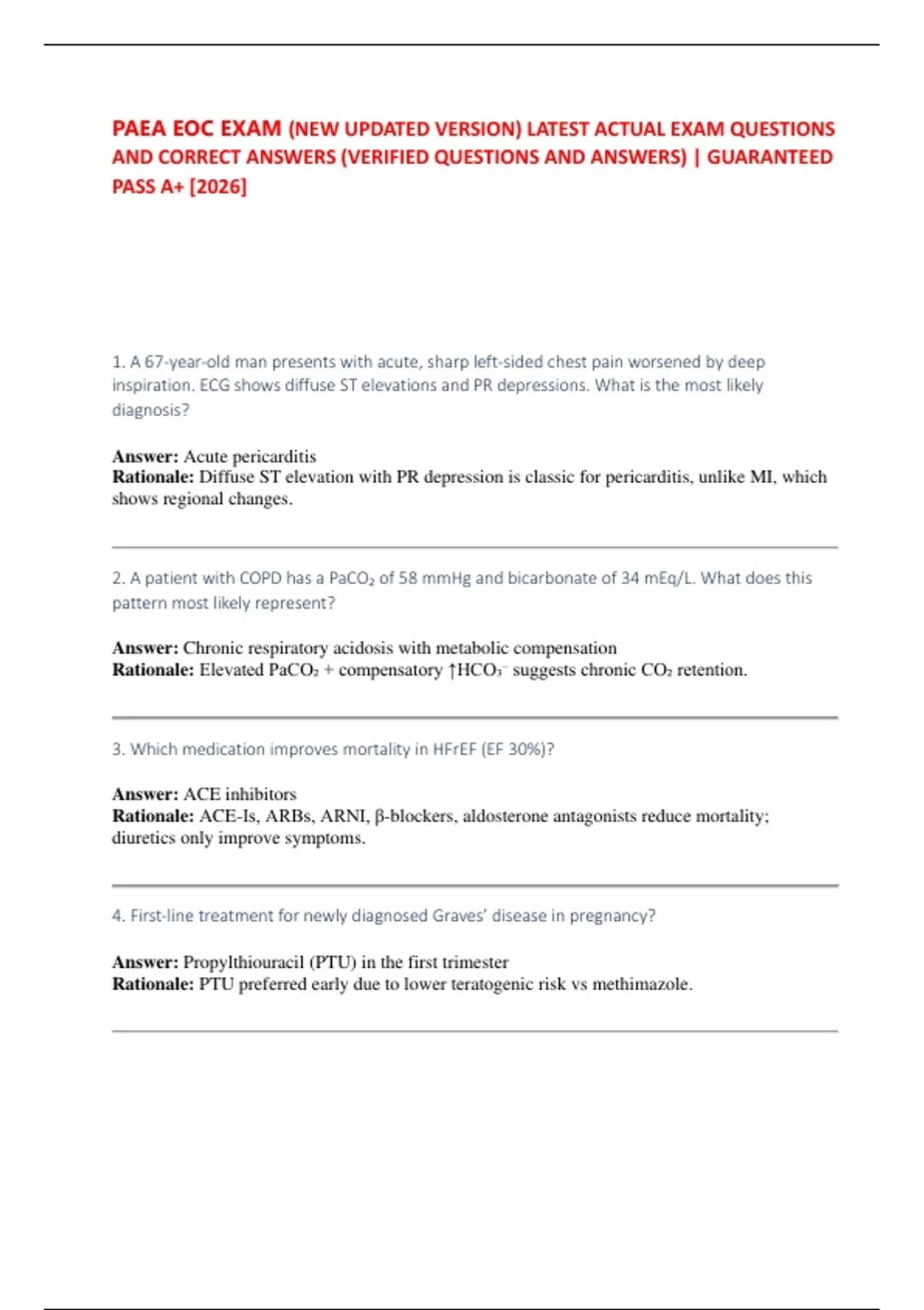 PAEA EOC EXAM (NEW UPDATED VERSION) LATEST ACTUAL EXAM QUESTIONS