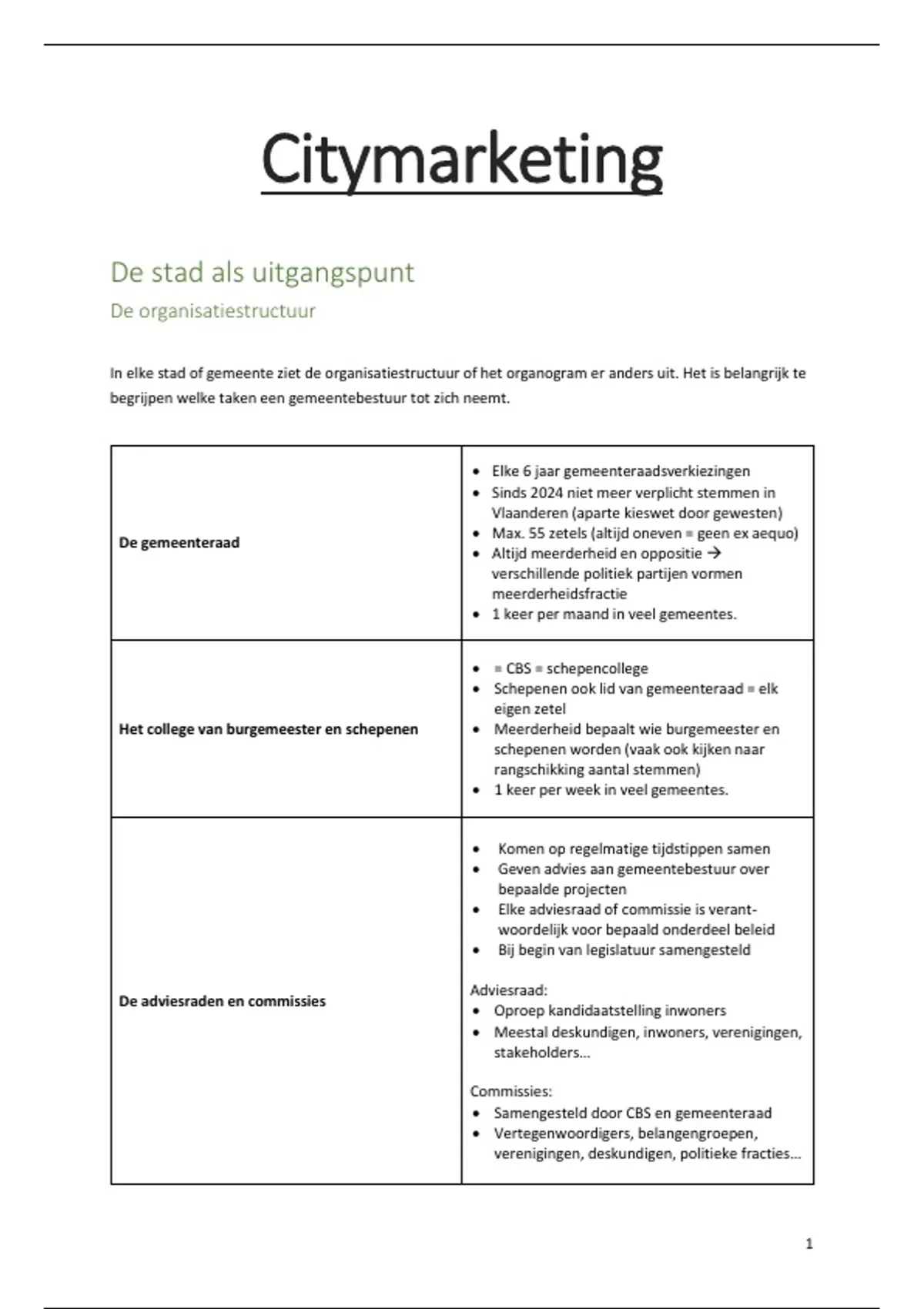 Samenvatting - Citymarketing VIVES - Eventmanagement - (afstandsonderwijs)