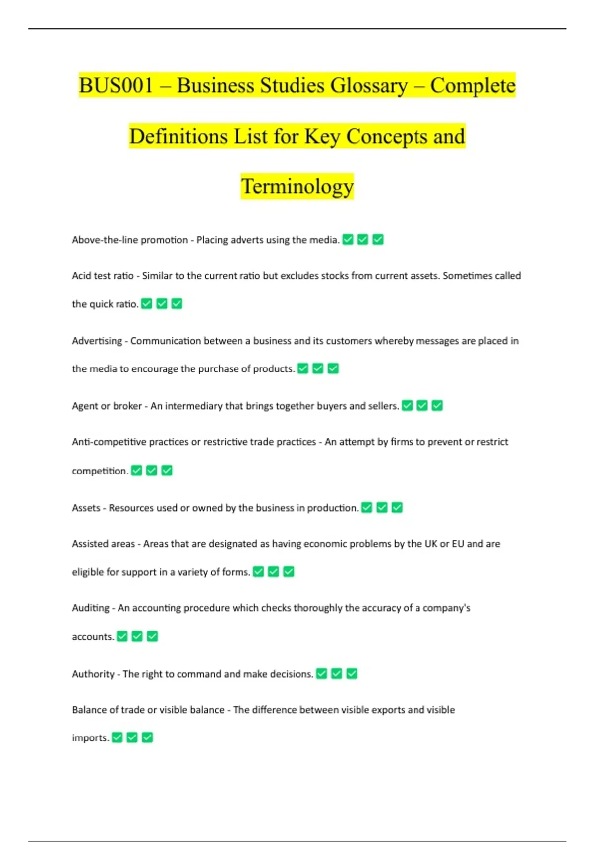 Definitions List for Key Concepts and