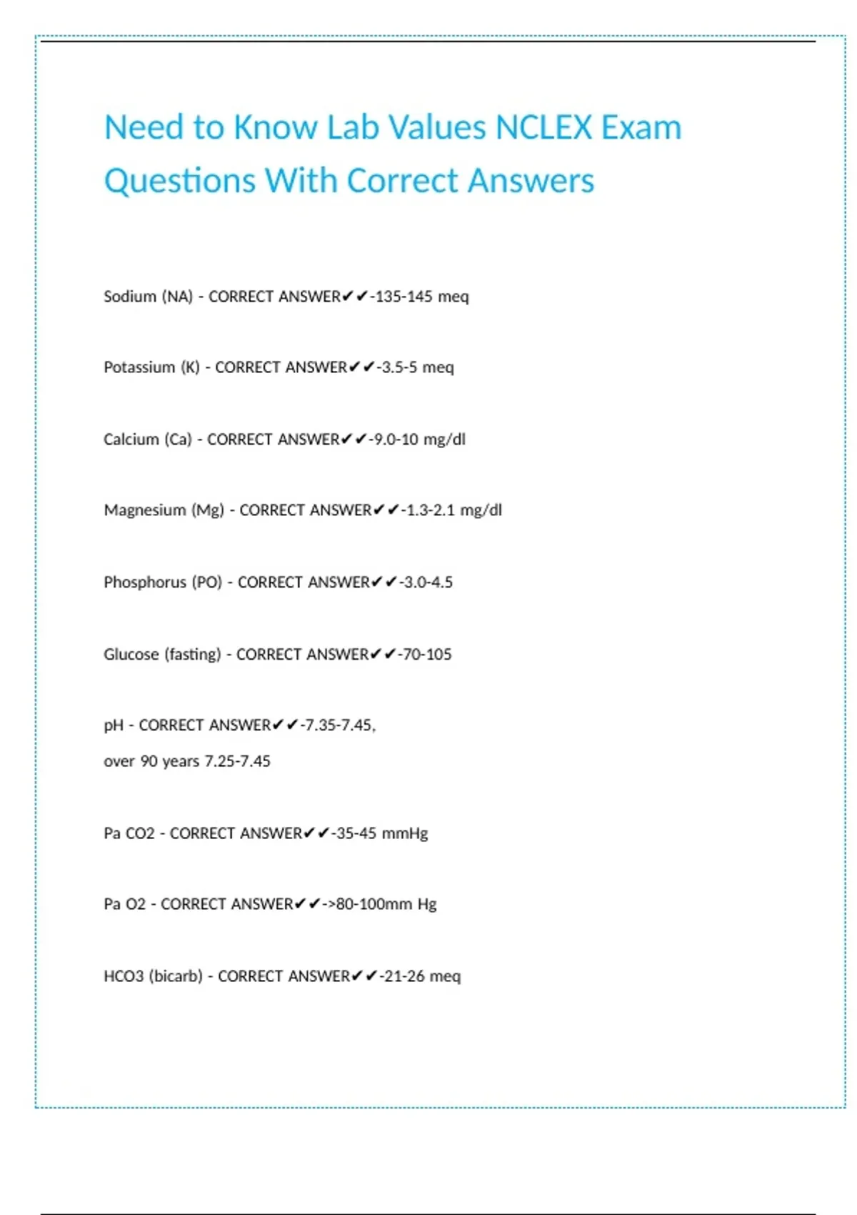 Need to Know Lab Values NCLEX Exam