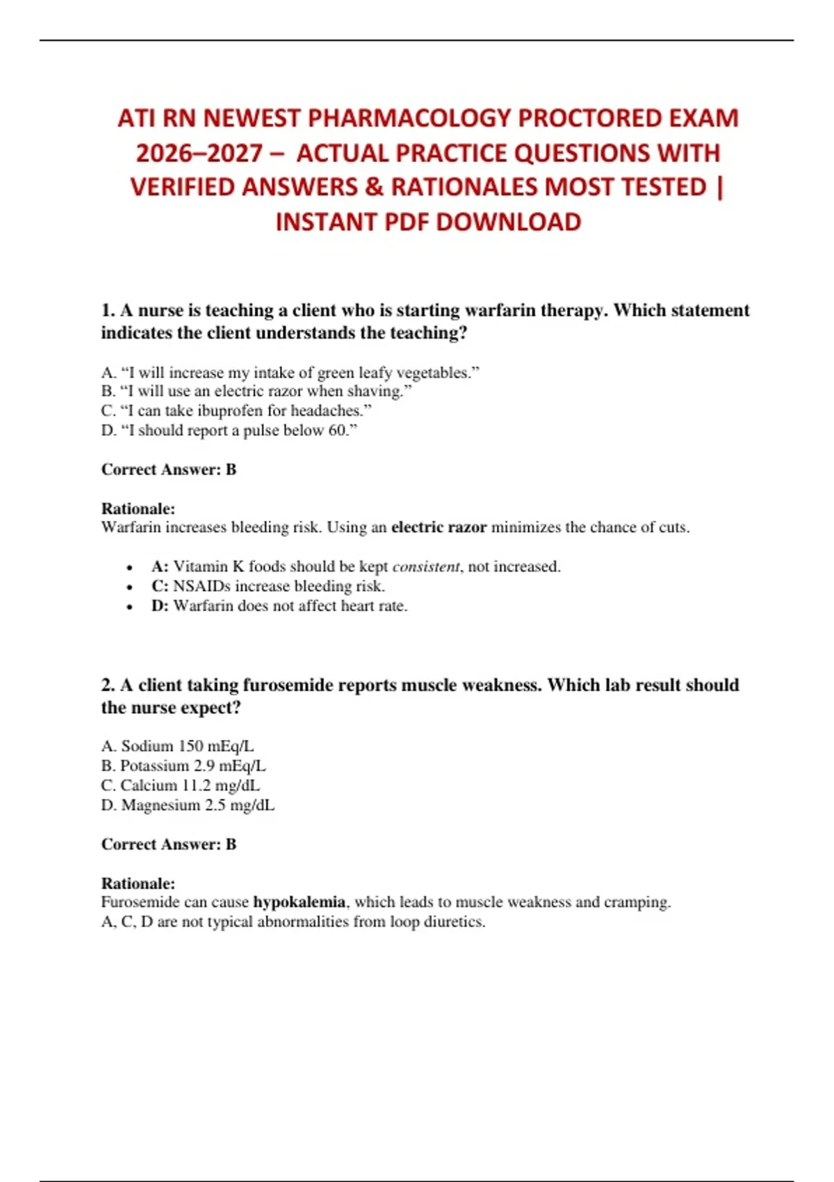 VERIFIED ANSWERS & RATIONALES MOST TESTED |