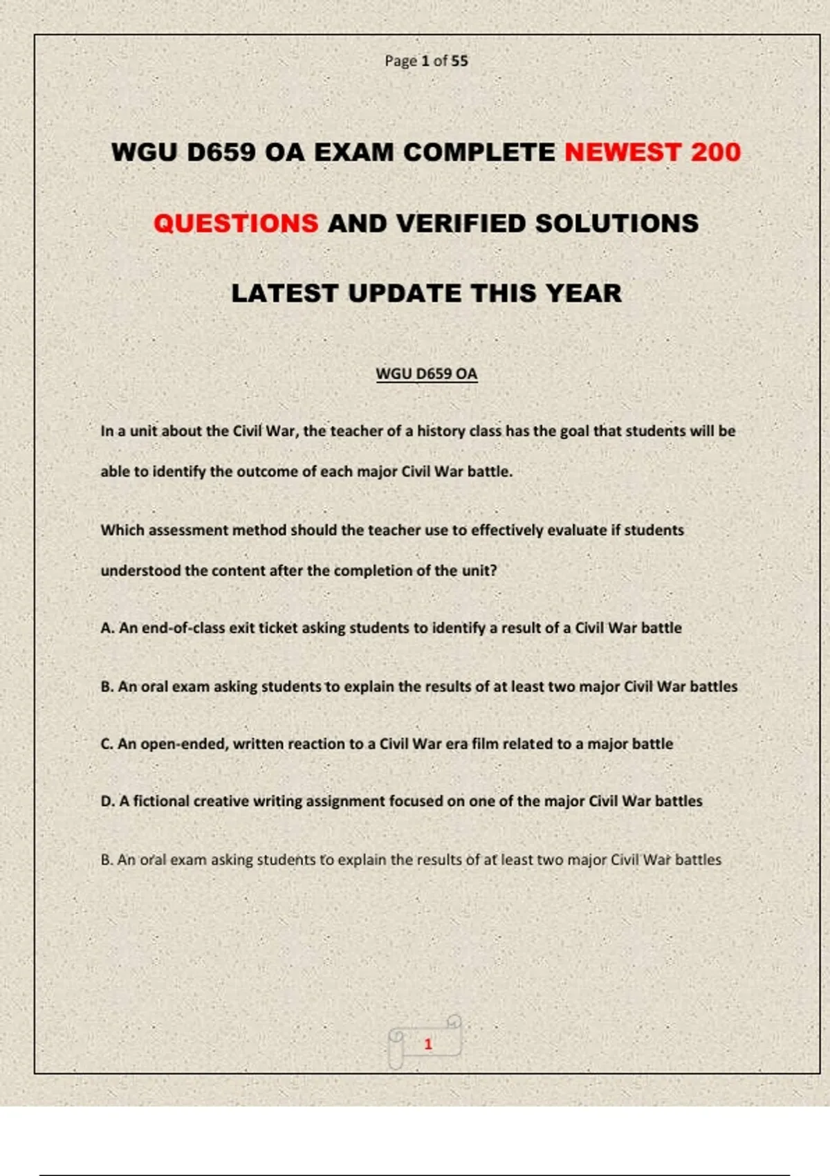WGU D659 OA EXAM COMPLETE NEWEST 200 QUESTIONS AND VERIFIED SOLUTIONS LATEST UPDATE THIS YEAR