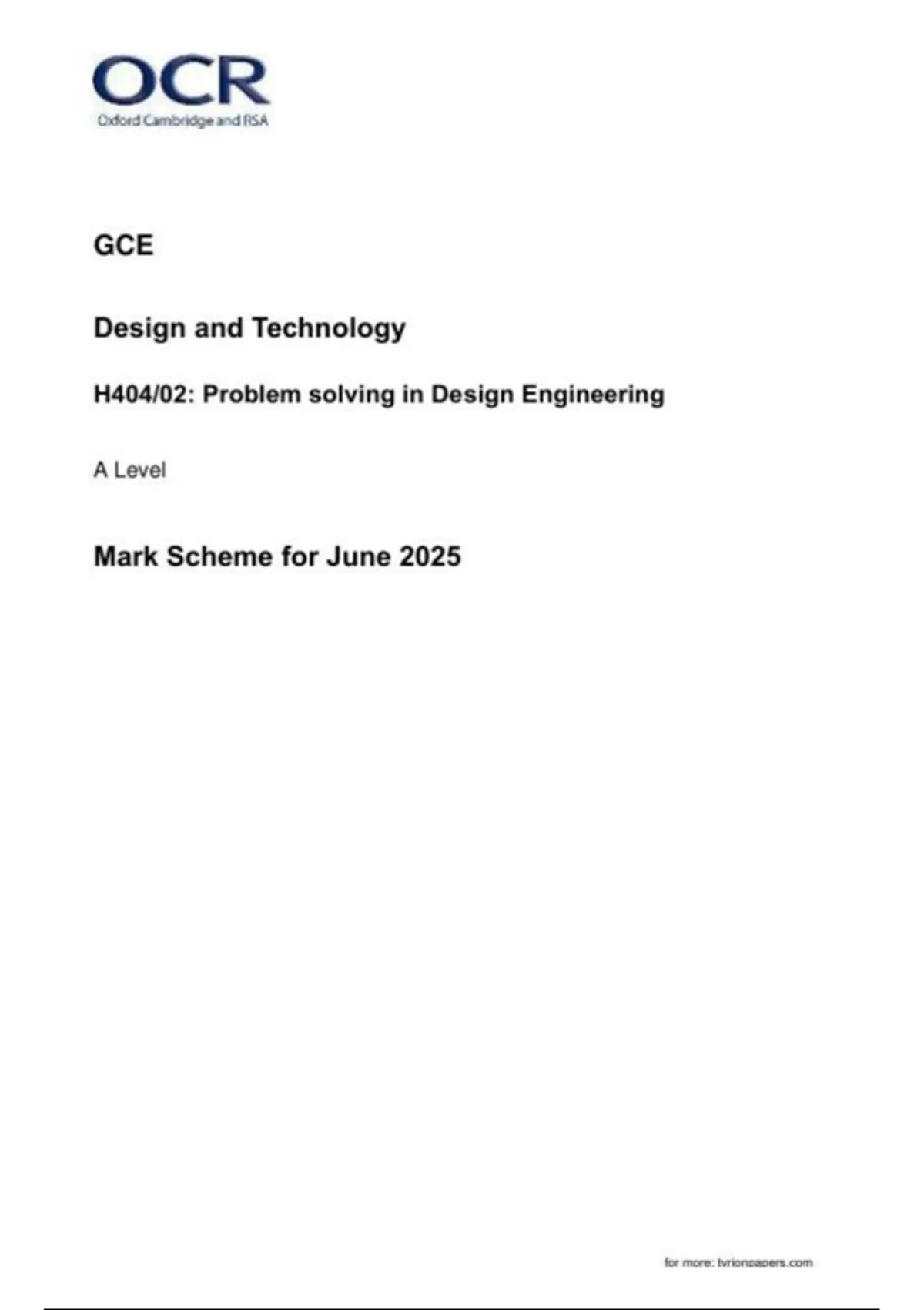 OCR A Level Design and Technology; Design Engineering paper 2| H404_02| June 2025 Final mark scheme