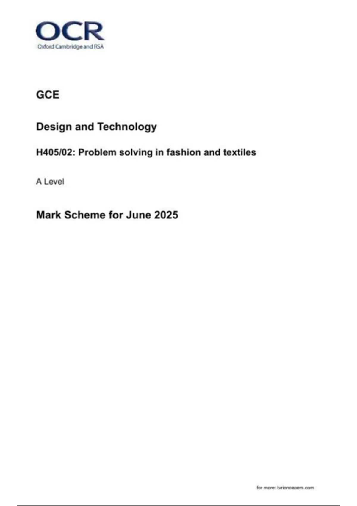 OCR A Level Design and Technology; Fashion and Textiles paper 2| H405_02| June 2025 Final mark scheme