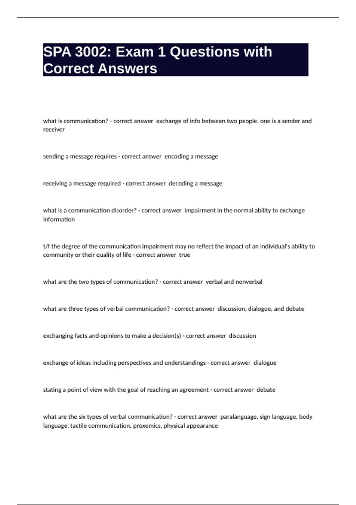 SPA 3002 Exam 1 Questions with Correct Answers