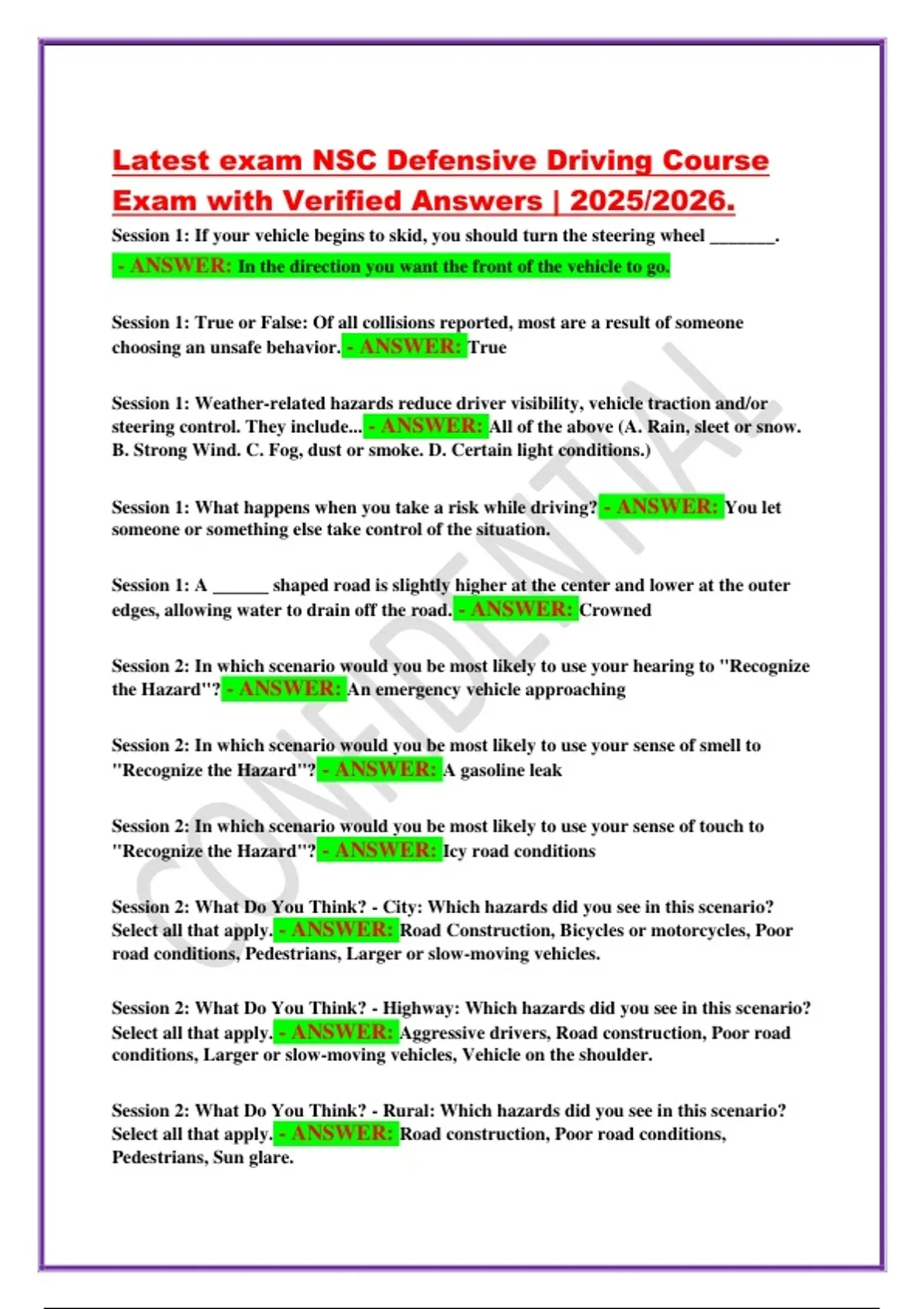 Latest exam NSC Defensive Driving Course