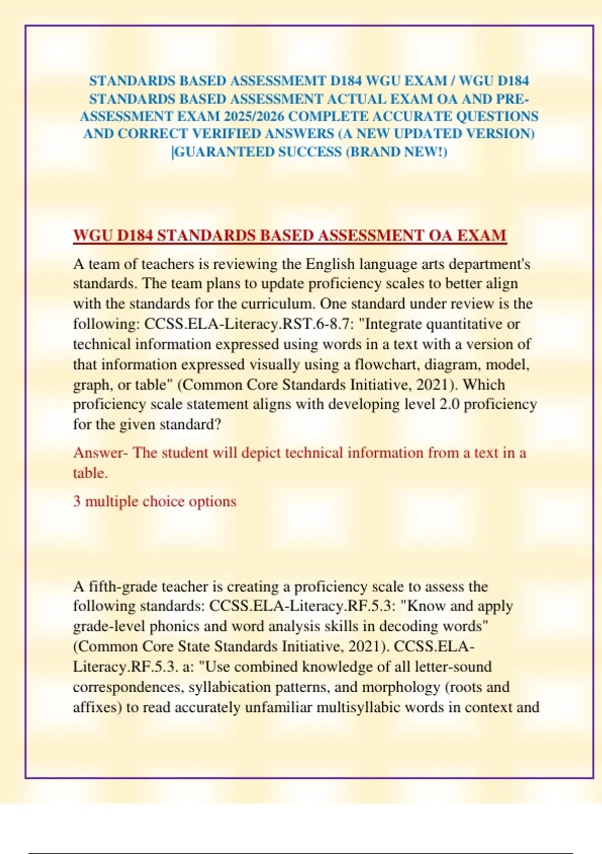 WGU D184 STANDARDS BASED ASSESSMENT OA EXAM