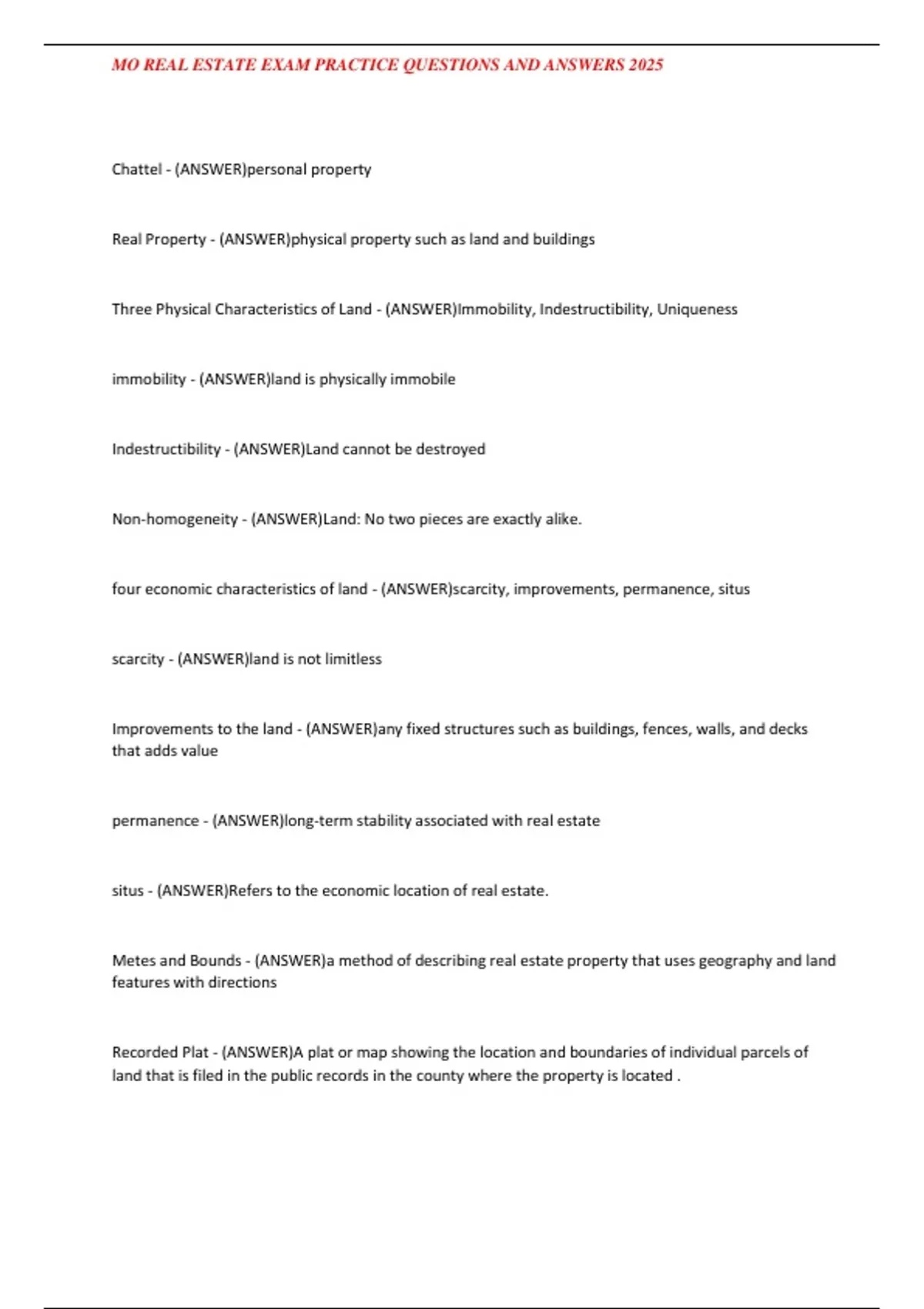 , MO REAL ESTATE EXAM PRACTICE QUESTIONS AND ANSWERS 2025