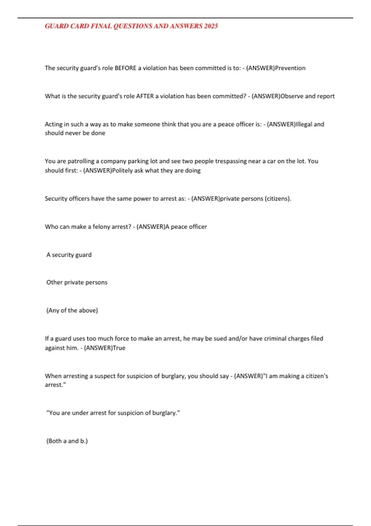 , GUARD CARD FINAL QUESTIONS AND ANSWERS 2025