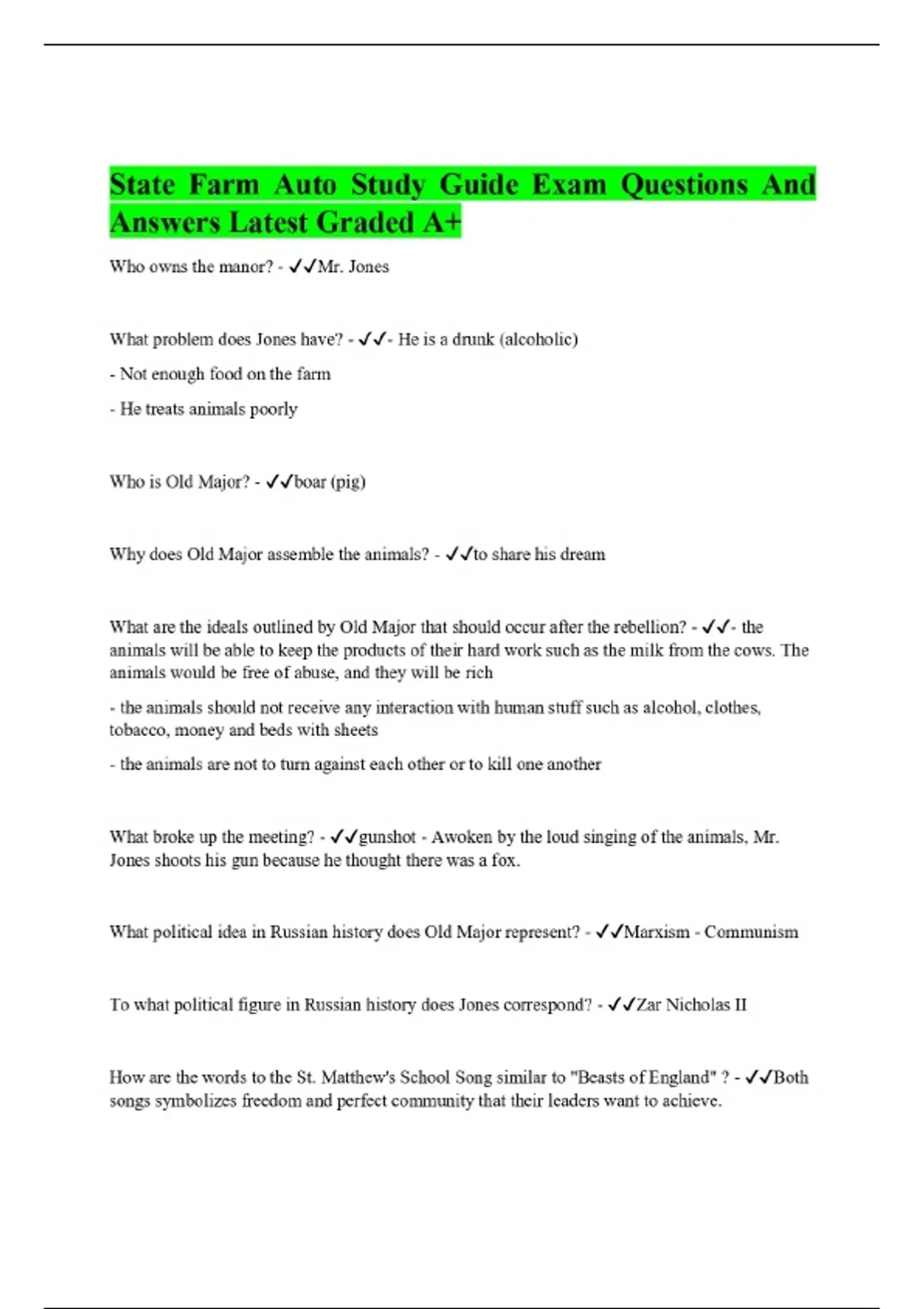 State Farm Auto Study Guide Exam Questions And Answers Latest Graded A+