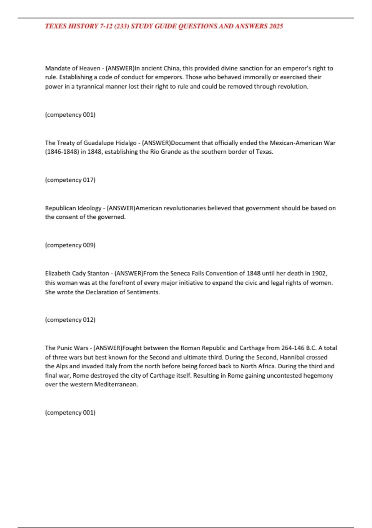 ,TEXES HISTORY 7-12 (233) STUDY GUIDE QUESTIONS AND ANSWERS 2025