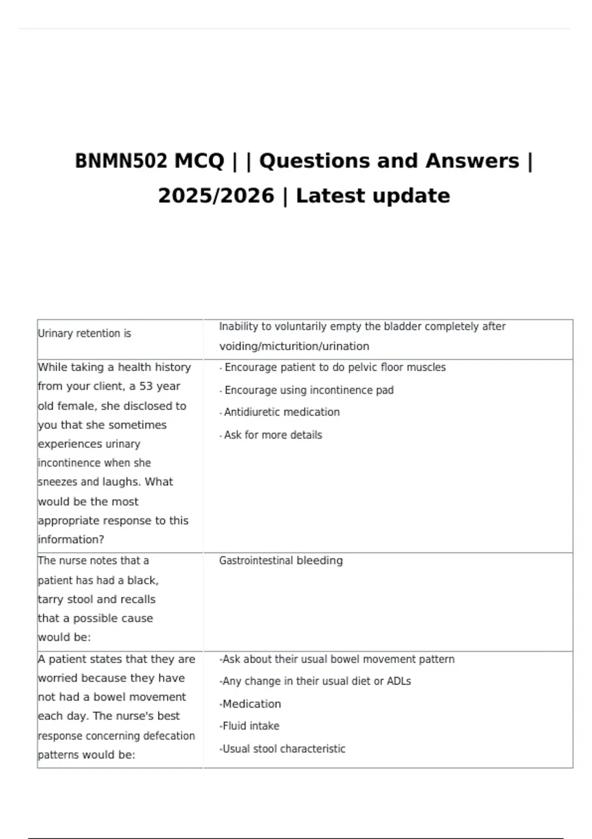 BNMN502 MCQ | | Questions and Answers |