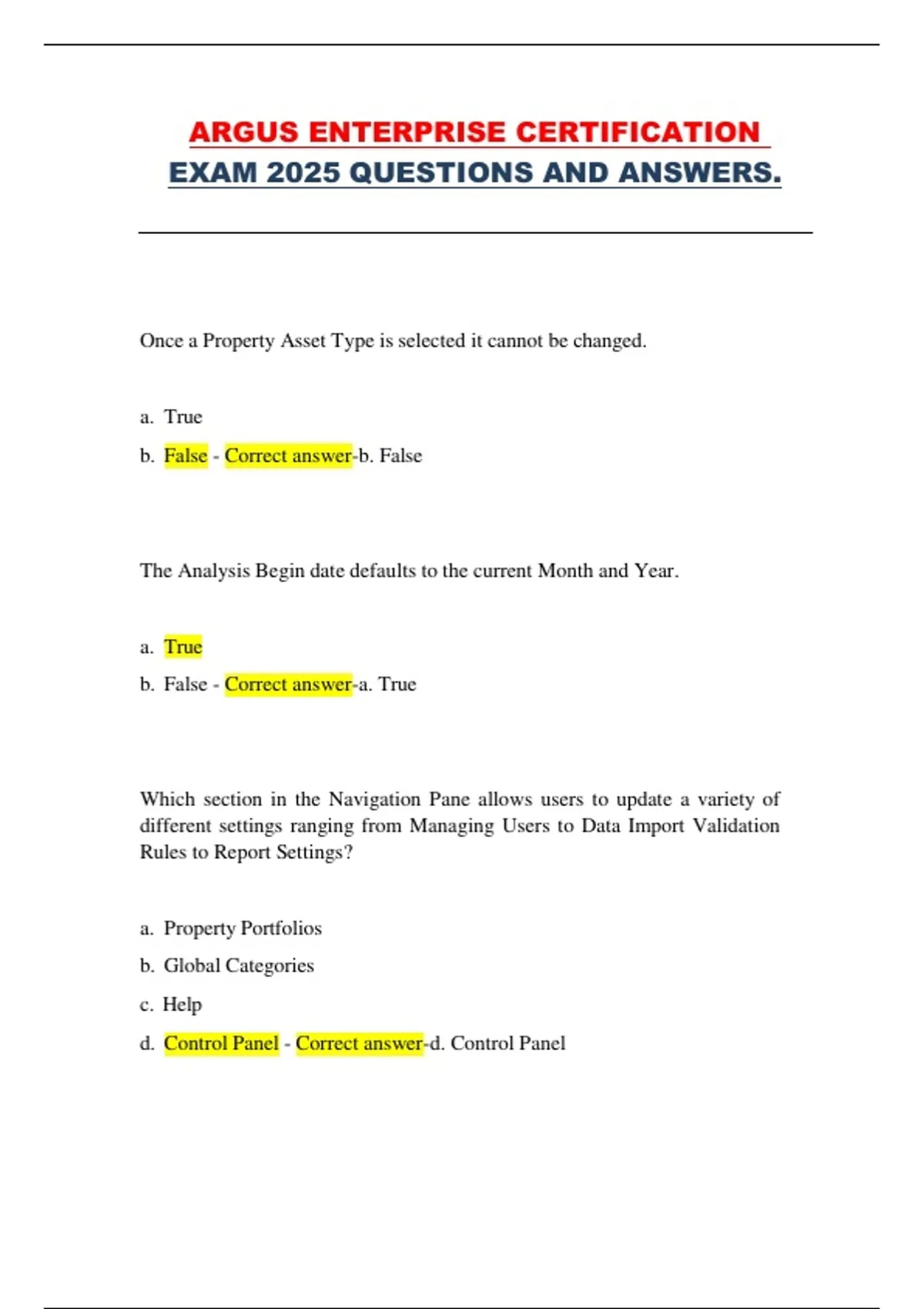 ARGUS Enterprise Certification Exam 2025 – Complete Questions and Correct Answers – Full Study & Reference Guide