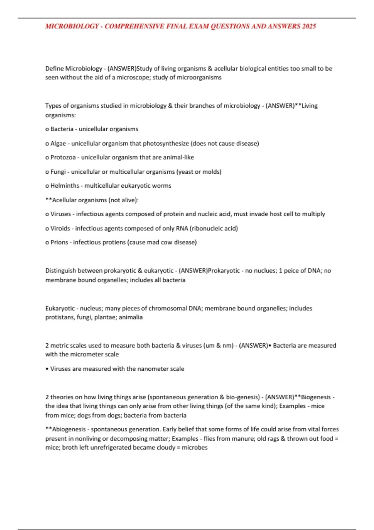 , MICROBIOLOGY - COMPREHENSIVE FINAL EXAM QUESTIONS AND ANSWERS 2025