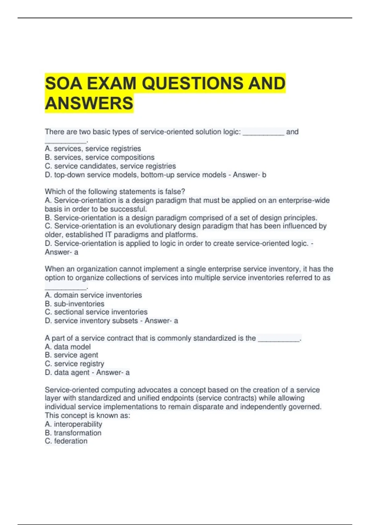 SOA EXAM QUESTIONS AND ANSWERS