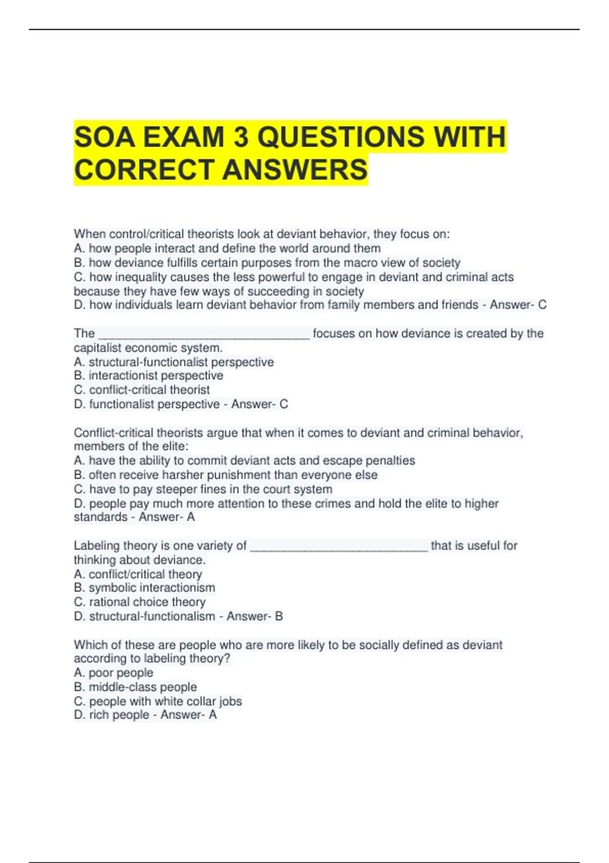 SOA EXAM 3 QUESTIONS WITH CORRECT ANSWERS