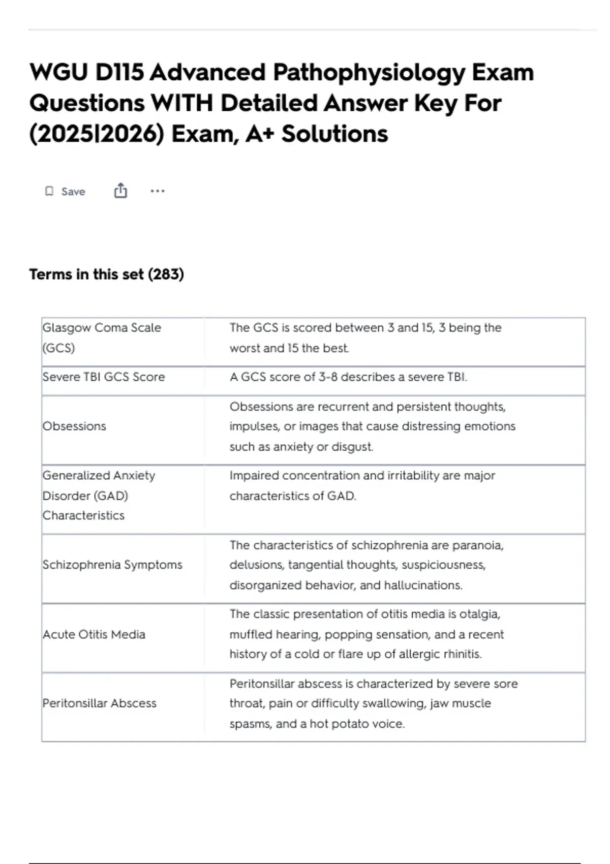 WGU D115 Advanced Pathophysiology Exam Questions WITH Detailed Answer Key For (2025|2026) Exam, A+ Solutions