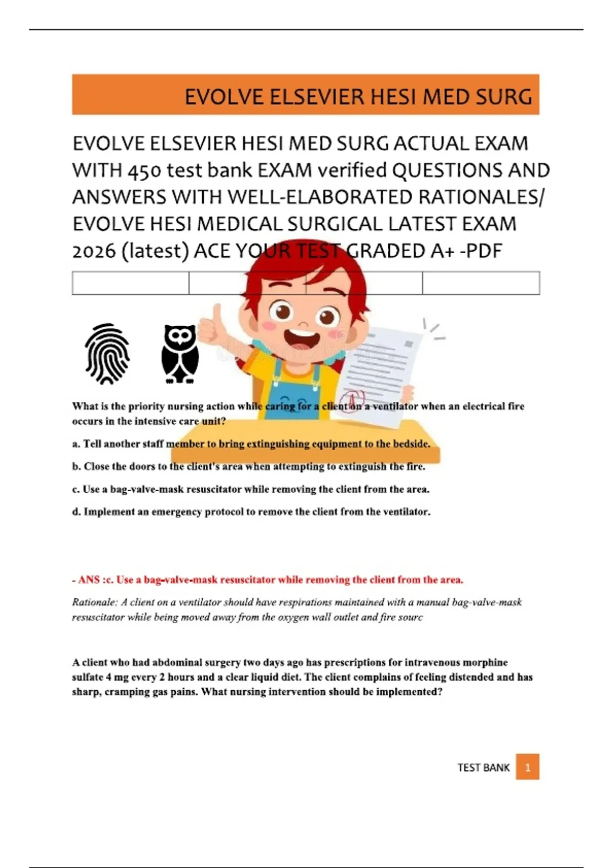 EVOLVE ELSEVIER HESI MED SURG ACTUAL EXAM WITH 450 test bank EXAM verified QUESTIONS AND ANSWERS WITH WELL-ELABORATED RATIONALES EVOLVE HESI MEDICAL SURGICAL LATEST EXAM 2026 (latest) ACE YOUR TEST GRADED A+ -PDF