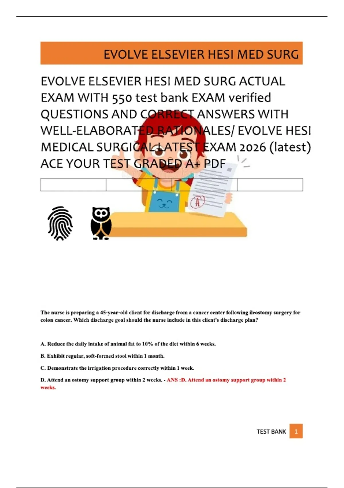 EVOLVE ELSEVIER HESI MED SURG ACTUAL EXAM WITH 550 test bank EXAM verified QUESTIONS AND CORRECT ANSWERS WITH WELL-ELABORATED RATIONALES EVOLVE HESI MEDICAL SURGICAL LATEST EXAM 2026 (latest) ACE YOUR TEST GRADED A+ PDF