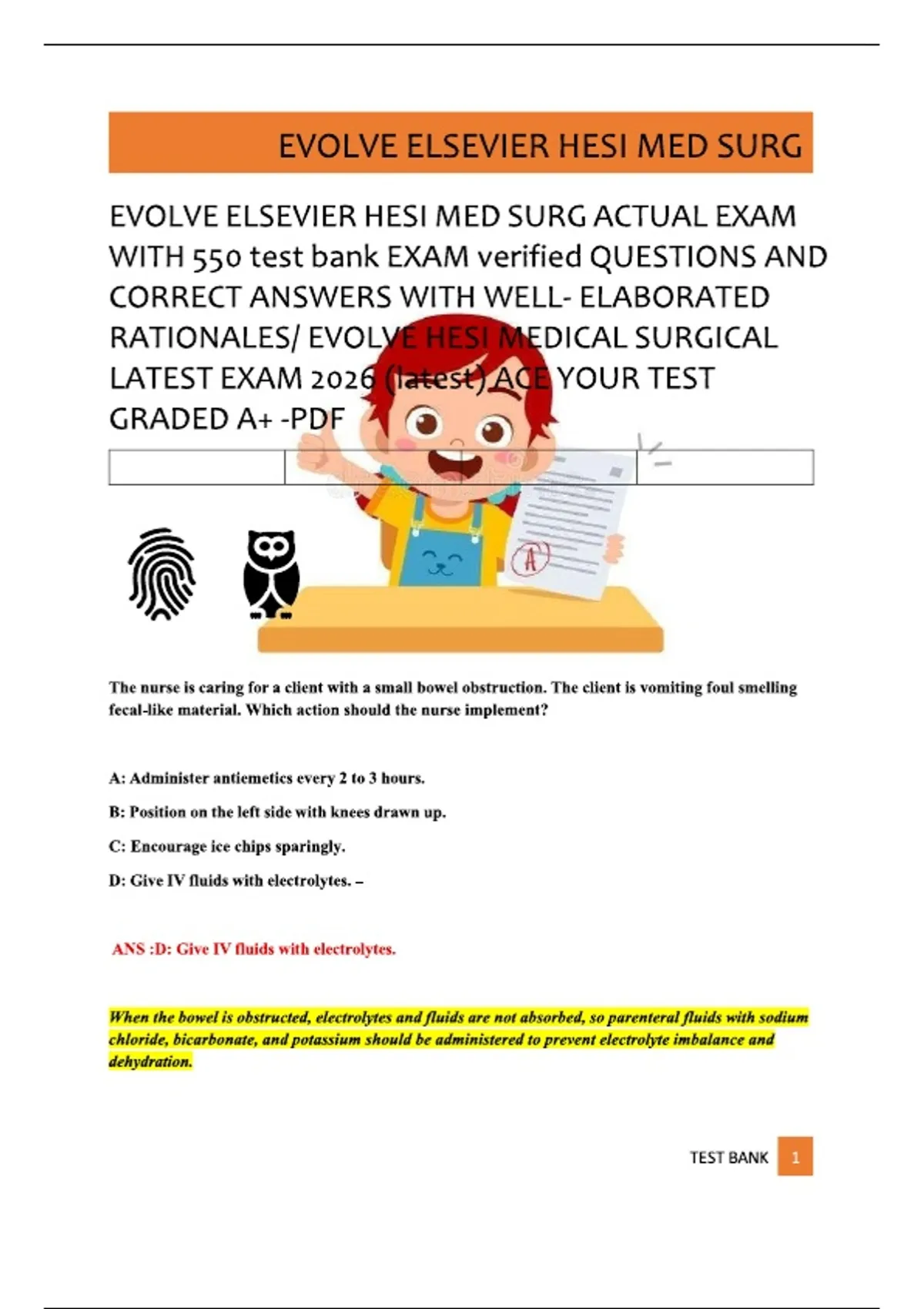 EVOLVE ELSEVIER HESI MED SURG ACTUAL EXAM WITH 550 test bank EXAM verified QUESTIONS AND CORRECT ANSWERS WITH WELL- ELABORATED RATIONALES EVOLVE HESI MEDICAL SURGICAL LATEST EXAM 2026 (latest) ACE YOUR TEST GRADED A+ -PDF