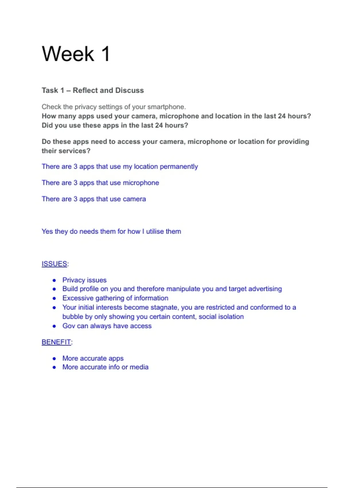 Task 1 – Reflect and Discuss