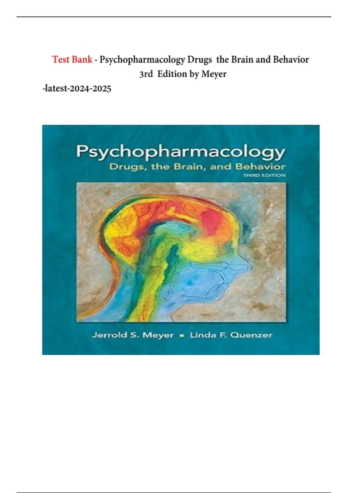 Test Bank - Psychopharmacology Drugs the Brain and Behavior 3rd Edition by Meyer -latest-