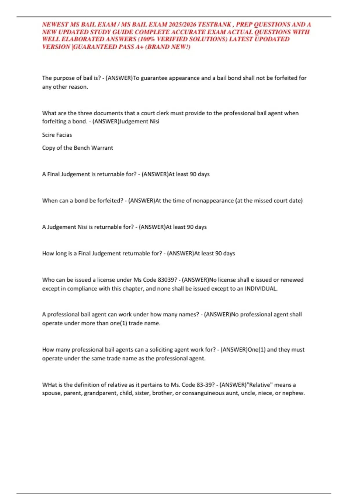 , NEWEST MS BAIL EXAM / MS BAIL EXAM 2025/2026 TESTBANK , PREP QUESTIONS AND A