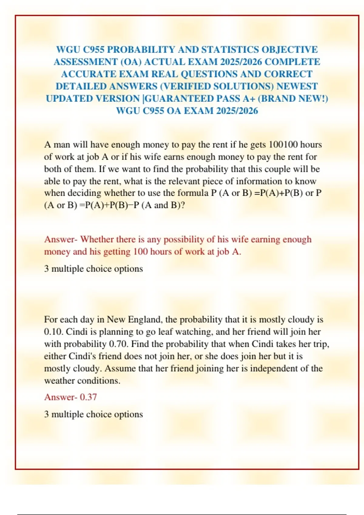 ACCURATE EXAM REAL QUESTIONS AND CORRECT
