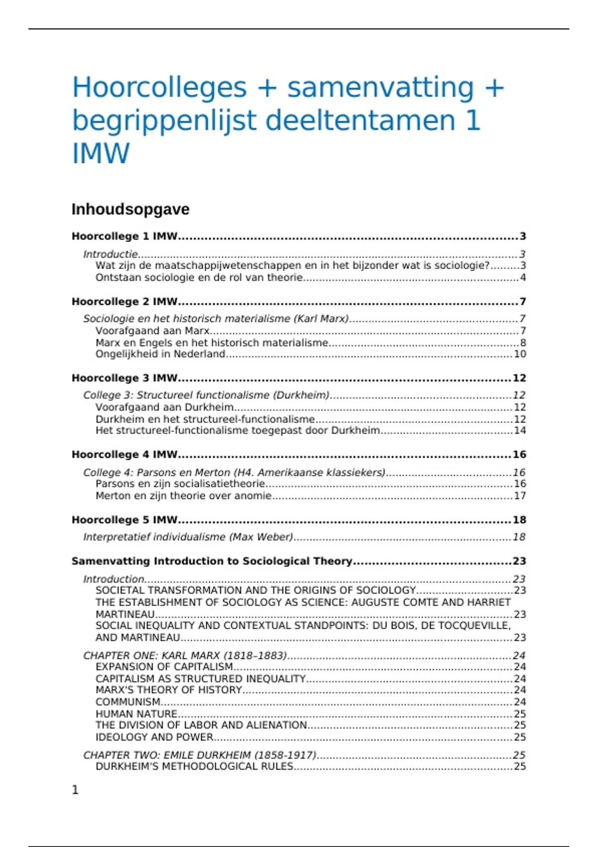 College 3: Structureel functionalisme (Durkheim)........................................................12