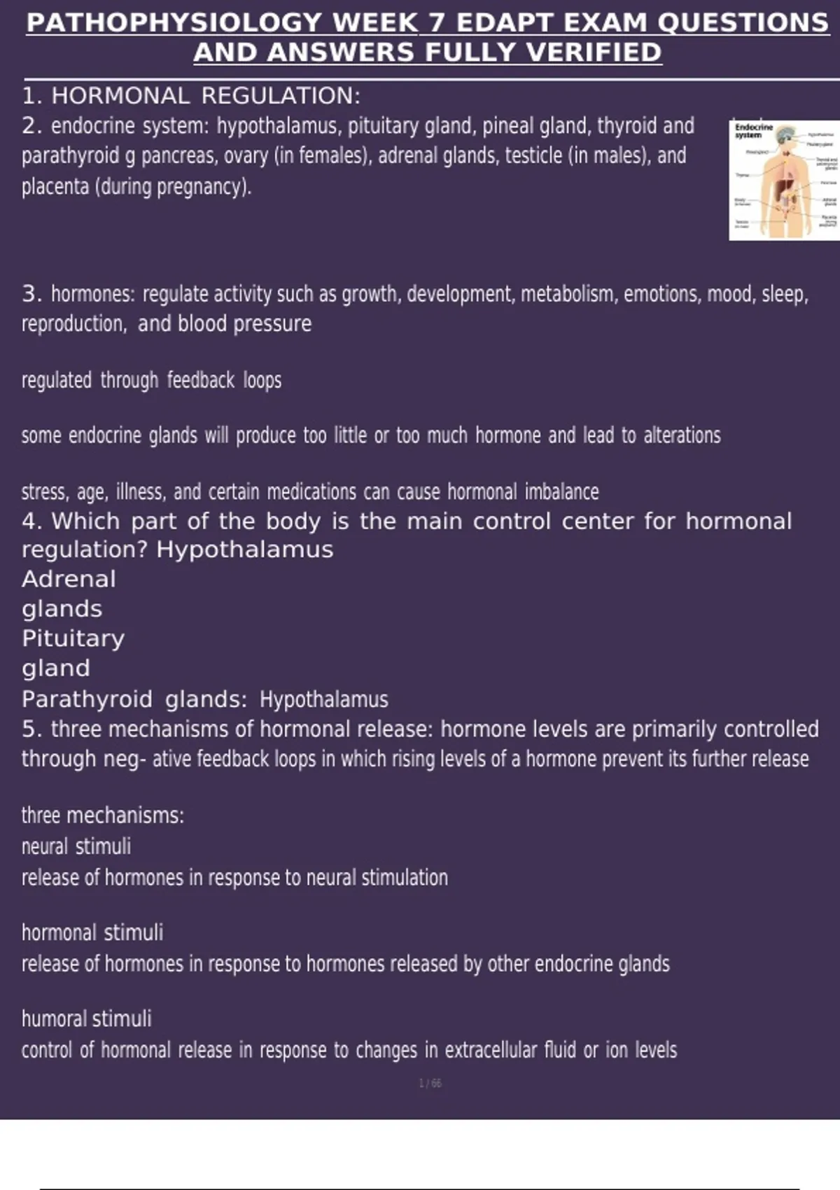, PATHOPHYSIOLOGY WEEK 7 EDAPT EXAM QUESTIONS