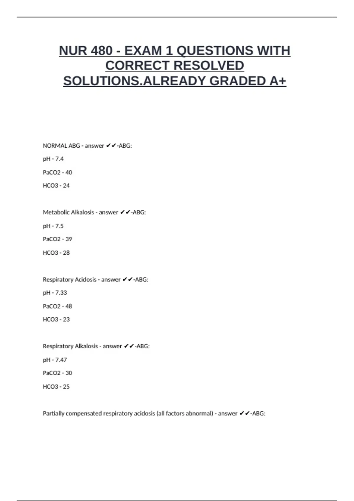 Partially compensated metabolic alkalosis - answer ✔✔-ABG: