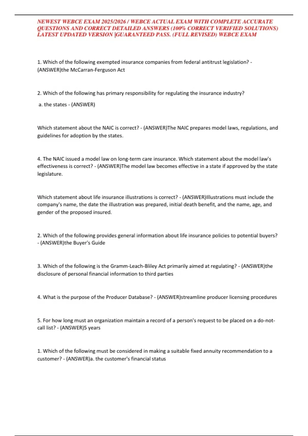 LATEST UPDATED VERSION |GUARANTEED PASS. (FULL REVISED) WEBCE EXAM