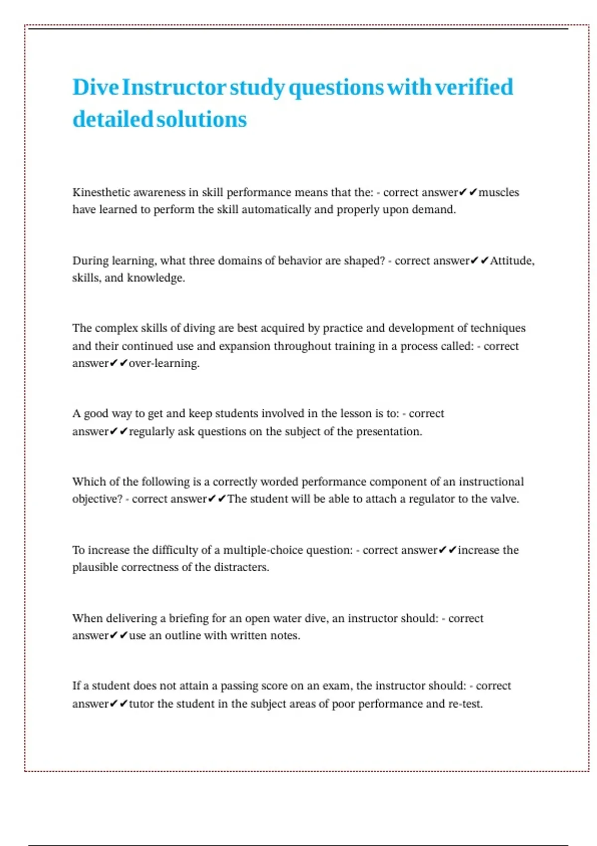 Dive Instructor study questions with verified ||\\//|| ||\\//|| ||\\//|| ||\\//|| ||\\//|| ||\\//||
