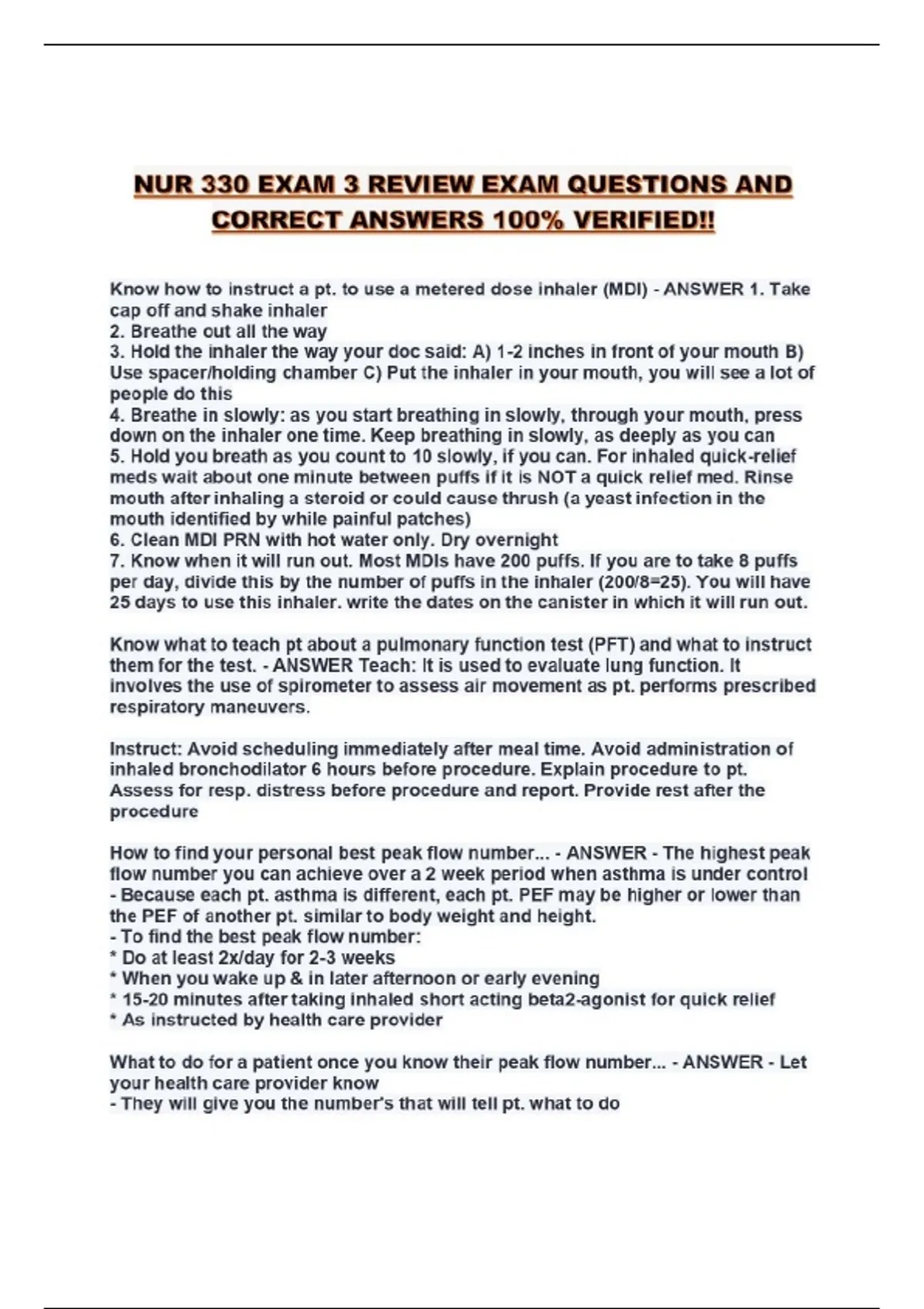 NUR 330 EXAM 3 REVIEW EXAM QUESTIONS AND CORRECT ANSWERS 100% VERIFIED!!...