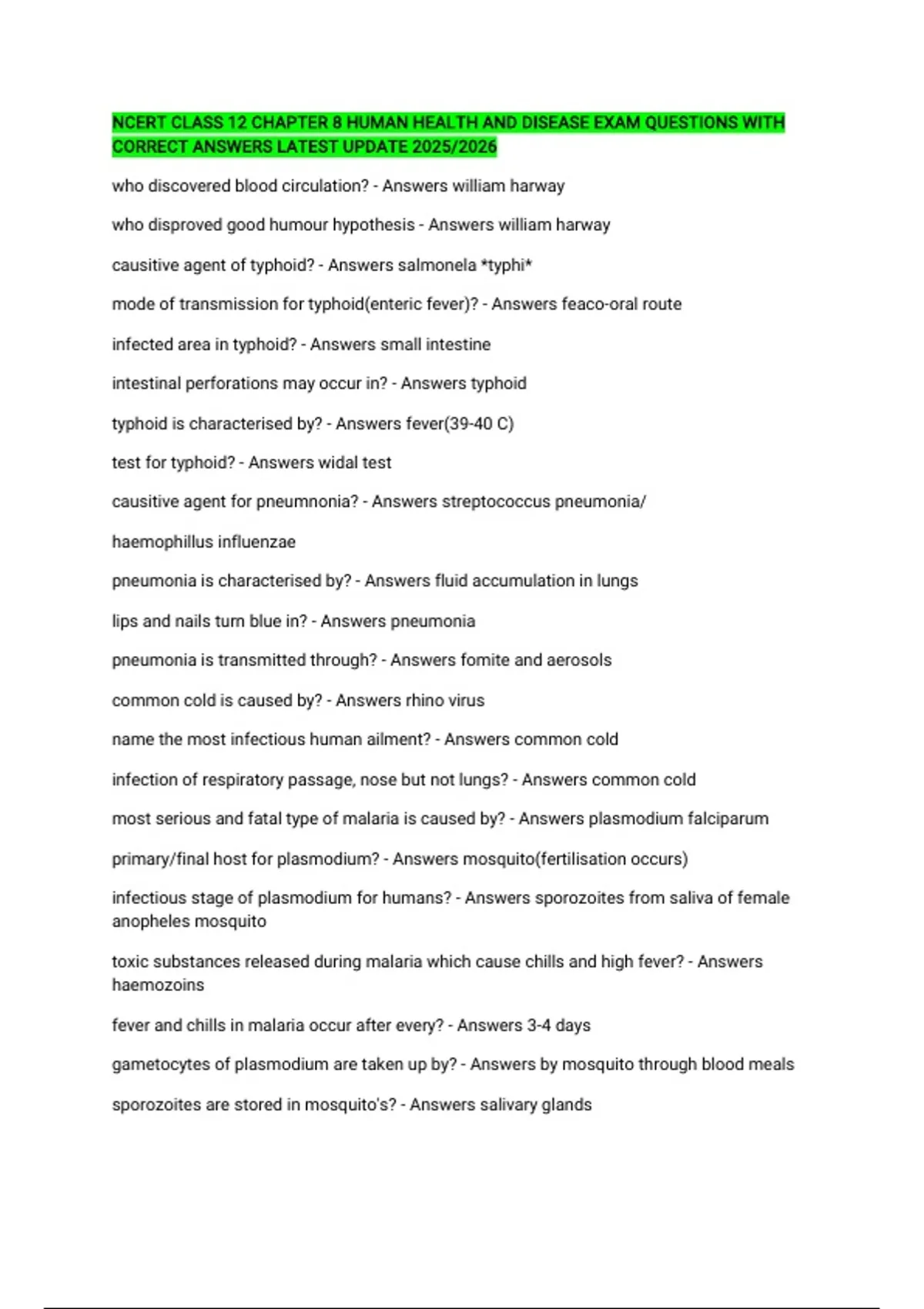CORRECT ANSWERS LATEST UPDATE 2025/2026