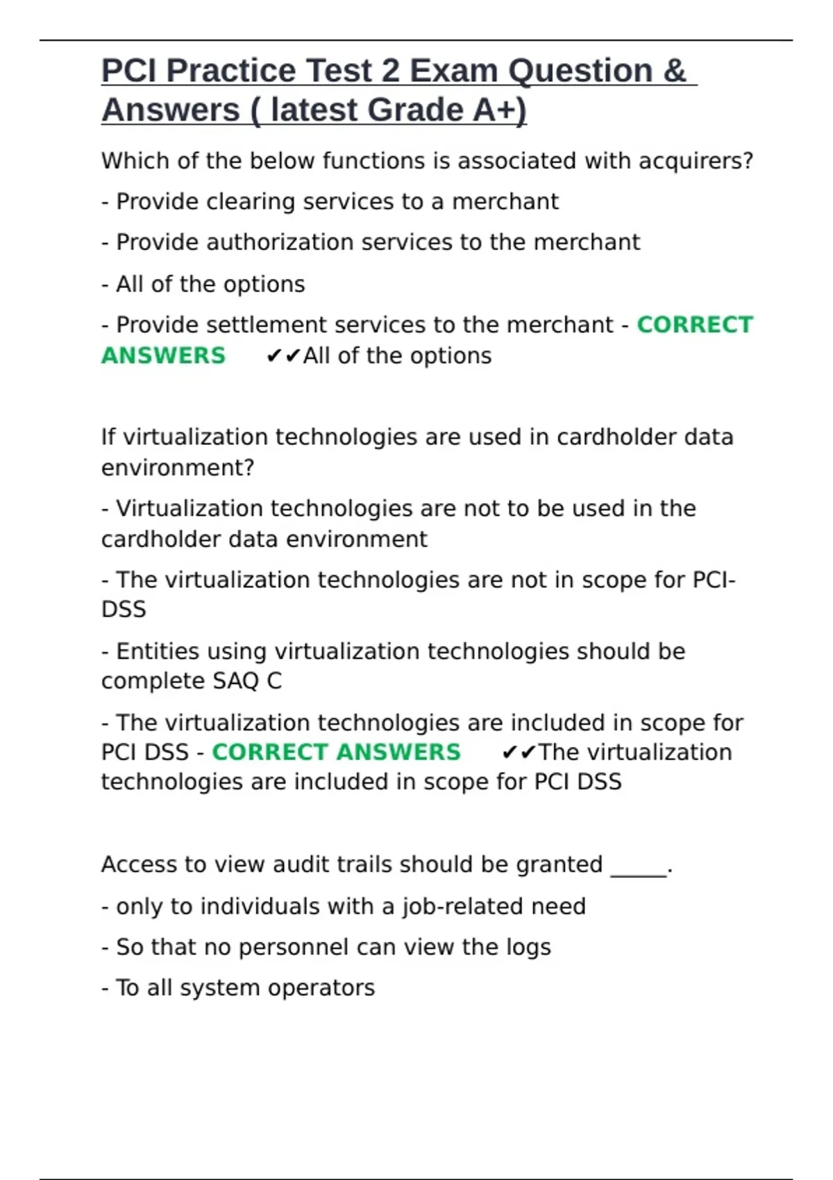 ,PCI Practice Test 2 Exam Question &