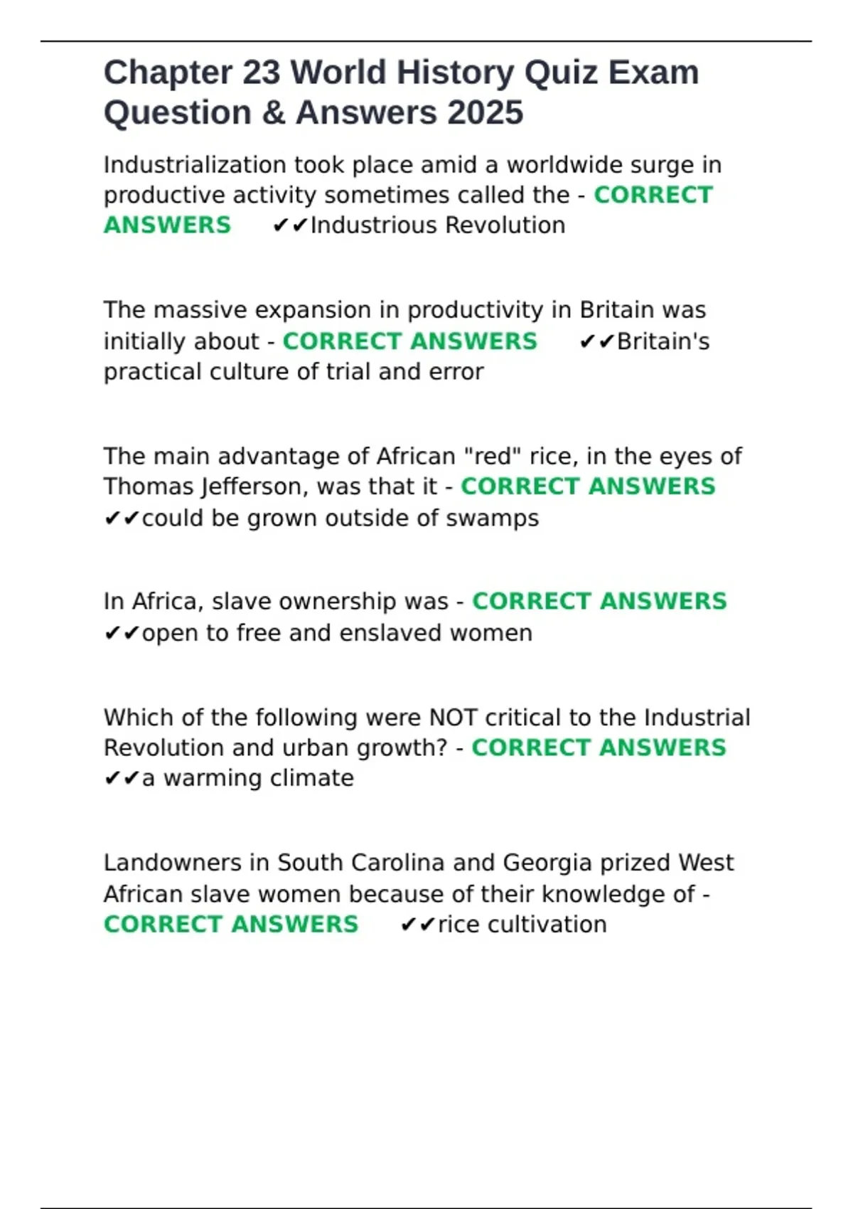 ANSWERS ✔✔Industrious Revolution