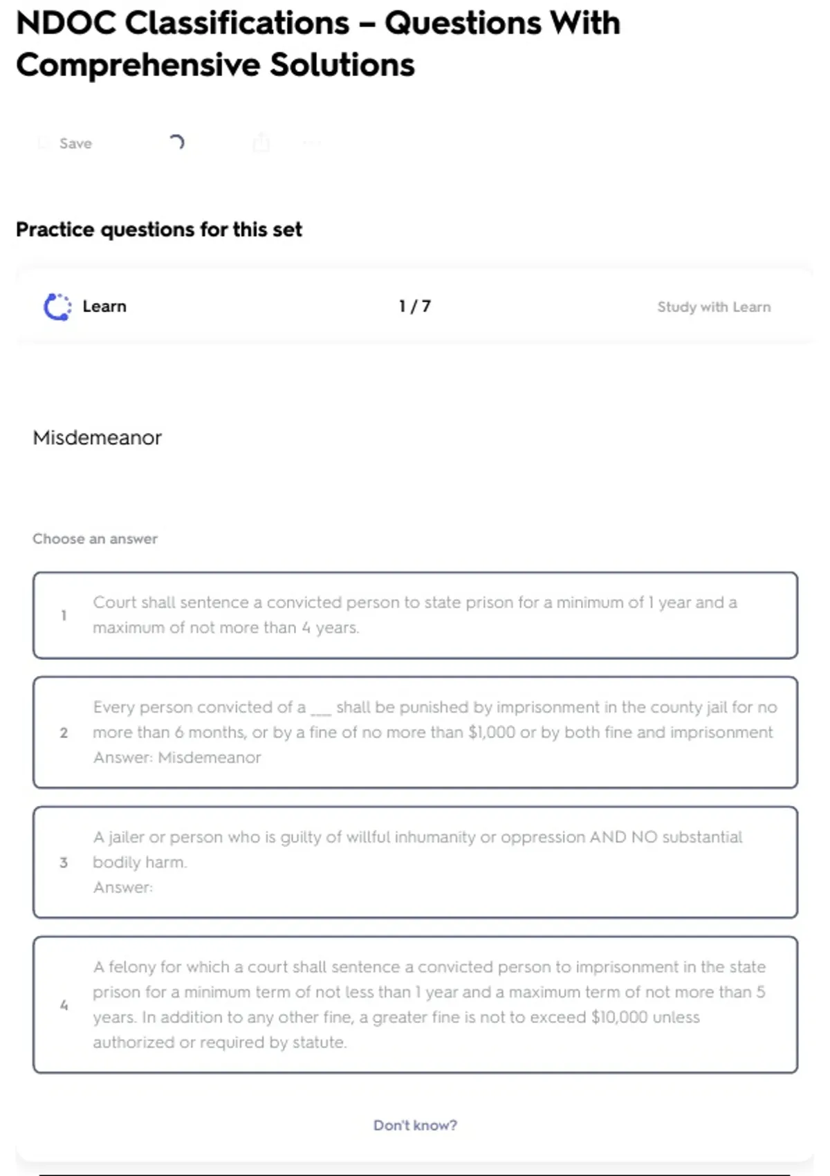NDOC Classifications – Questions With Comprehensive Solutions
