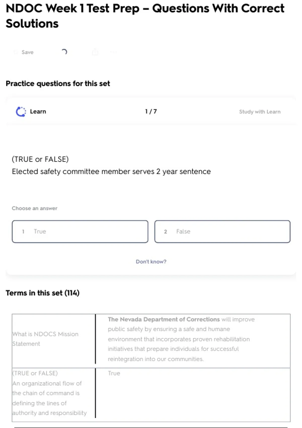 NDOC Week 1 Test Prep – Questions With Correct